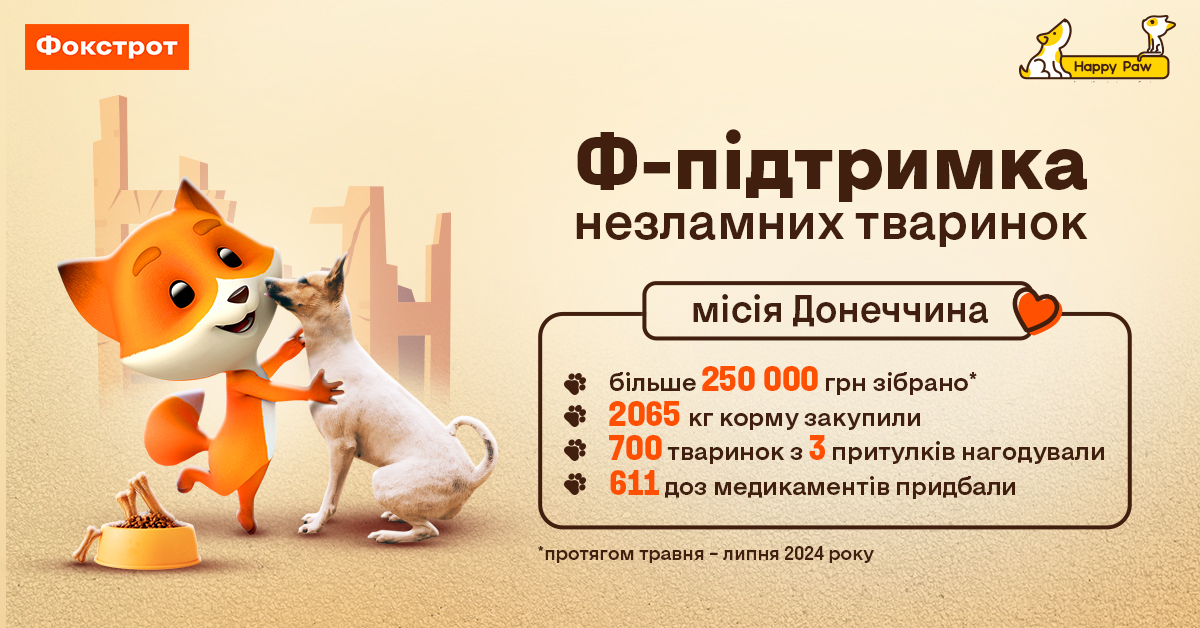 Нагадаємо, що у травні 2024 року Фокстрот разом із Happy Paw оголосили про запуск оновленої програми з допомоги безпритульним тваринам, які постраждали через повномасштабну війну в Україні. Ця програма є продовженням уже відомої акції «Ф-підтримка вимушено переміщених тваринок».