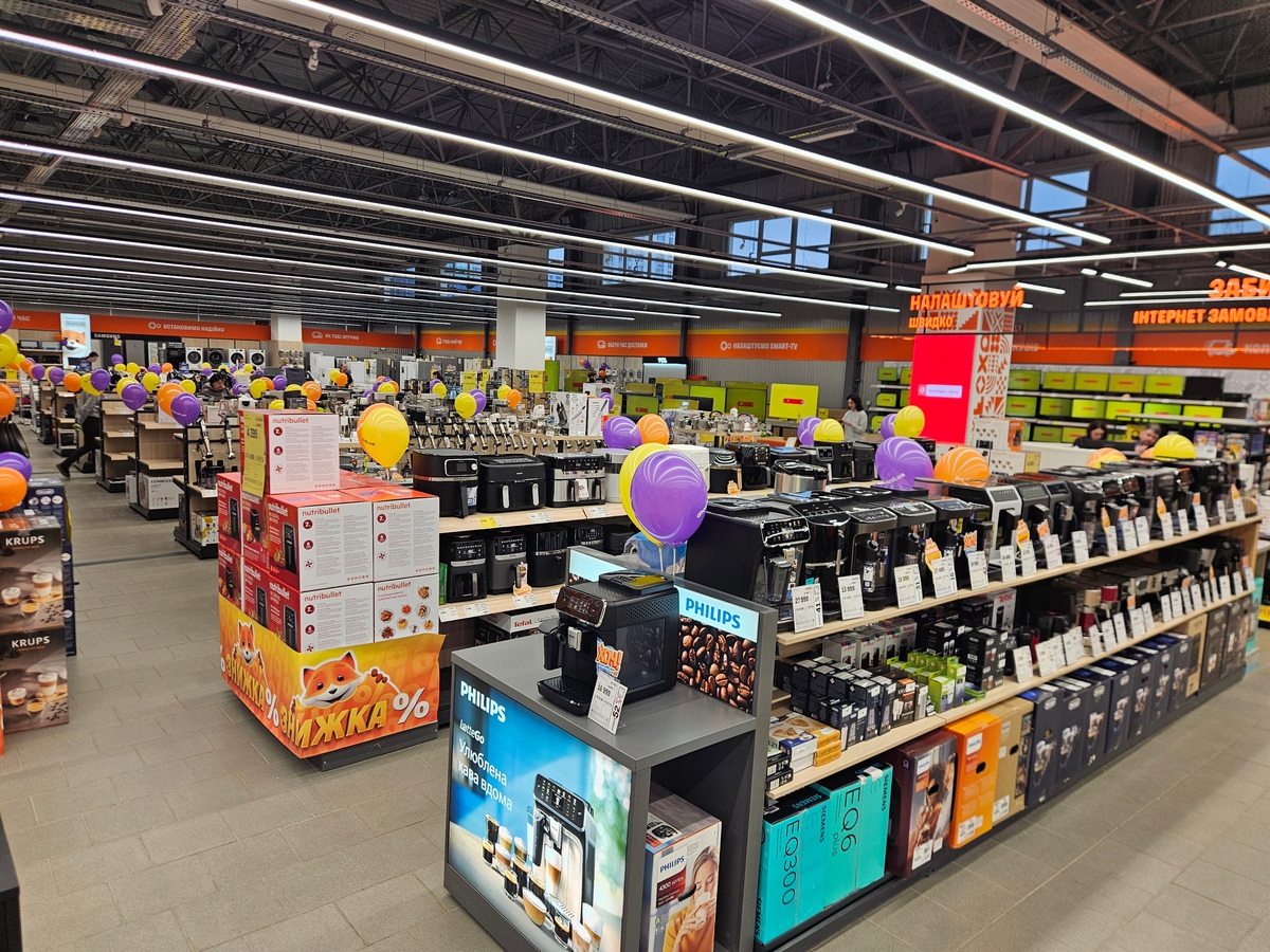 Це дозволило створити компактний і логічний маршрут покупця, посилити представленість найпопулярніших категорій та покращити персональну взаємодію з клієнтом. Оновлений магазин включає 37 сучасних бренд-зон, де покупці можуть не лише побачити техніку, а й протестувати її перед покупкою.