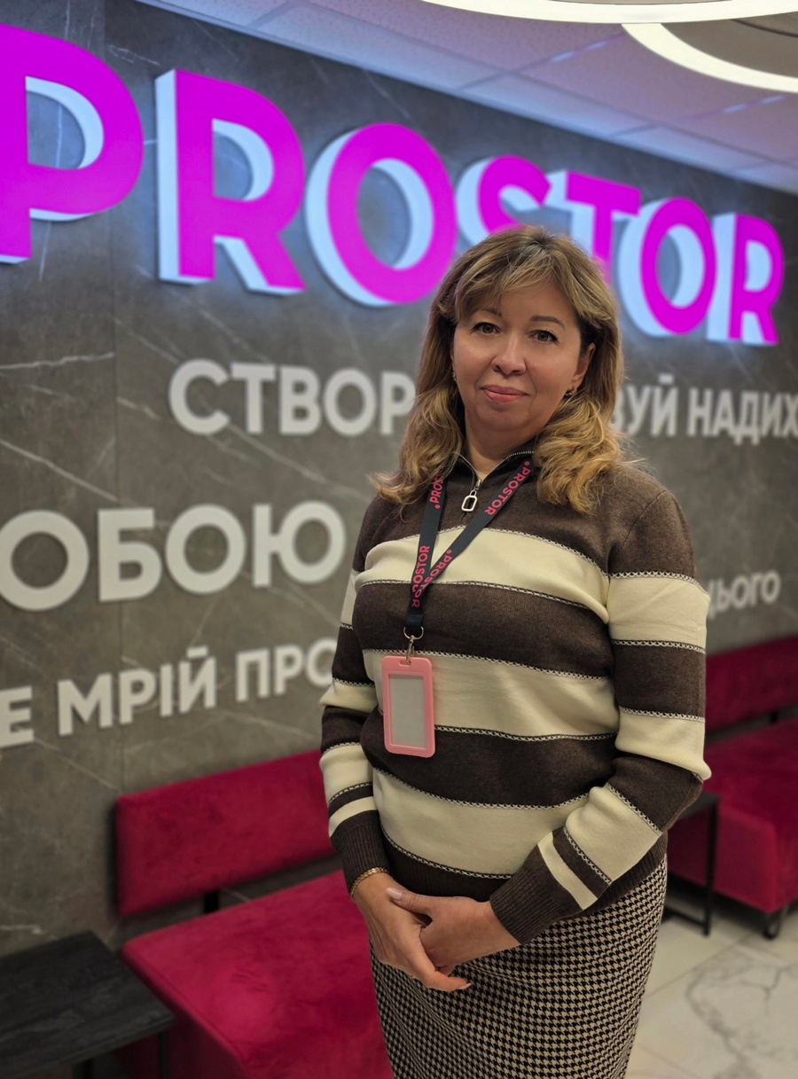 Галина приєдналася до Prostor понад десять років тому, як менеджер проекту. Вона згадує, що обрала компанію не випадково — шукала не просто роботу, а професійний виклик: «Я шукала не просто “роботу”, а проєкт, реалізація якого приноситиме результат для компанії і задоволення від втілення власних ідей», — розповідає Галина.