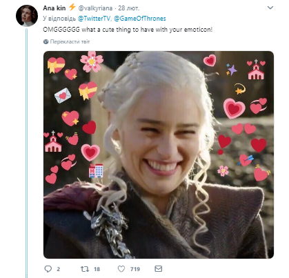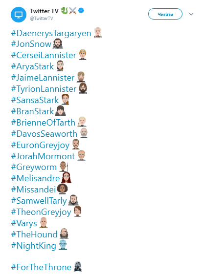 Свою лепту в загальний хайп вніс також Twitter, який запустив смайли з ликами головних героїв: з Джоном Сноу, Серсеєй Ланністер і навіть Варісом.