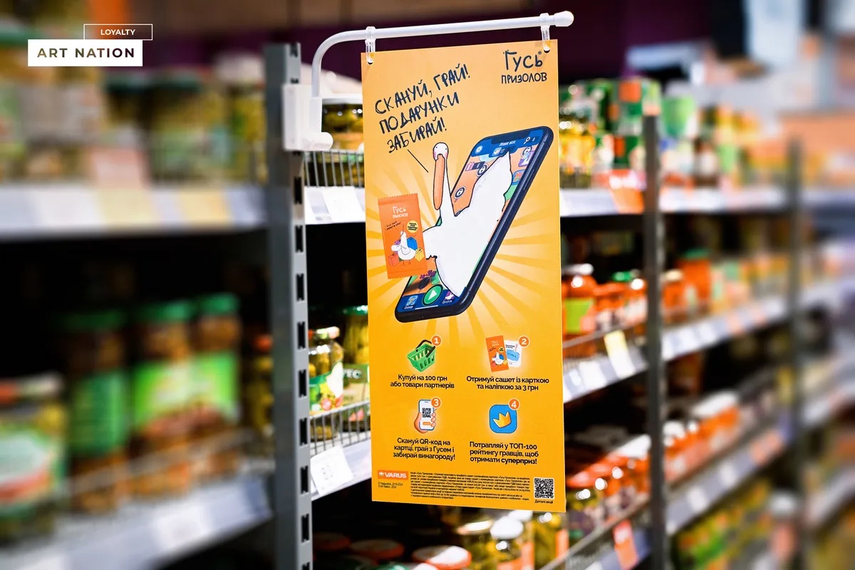Колекційна механіка працює дуже просто: за кожні 100 грн у чеку та купівлю товарів партнерів можна отримати сашет за акційною ціною. Всередині кожного сашету — колекційна картка з Гусем та унікальний QR-код.