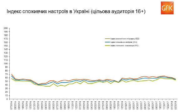 «Індекс споживчих настроїв у лютому 2018 року впав до рівня березня 2017 року, таким чином втративши набір висоти за період з травня по листопад 2017 року. Головним фактором падіння є зменшення індексу очікуваного розвитку економіки країни впродовж найближчих п’яти років. Позитивна новина лютого 2018 року – зменшення девальваційних очікувань порівняно до січня 2018 року», – коментують аналітики GfK Ukraine.