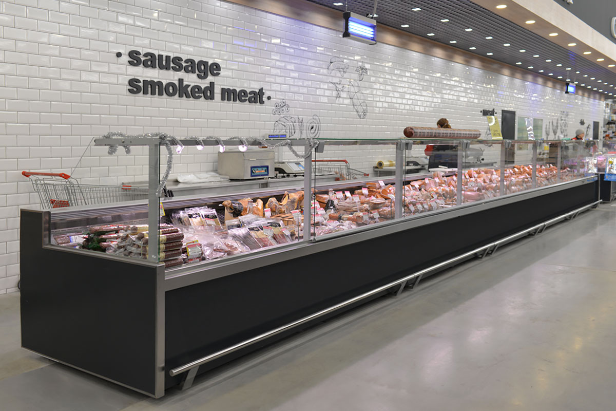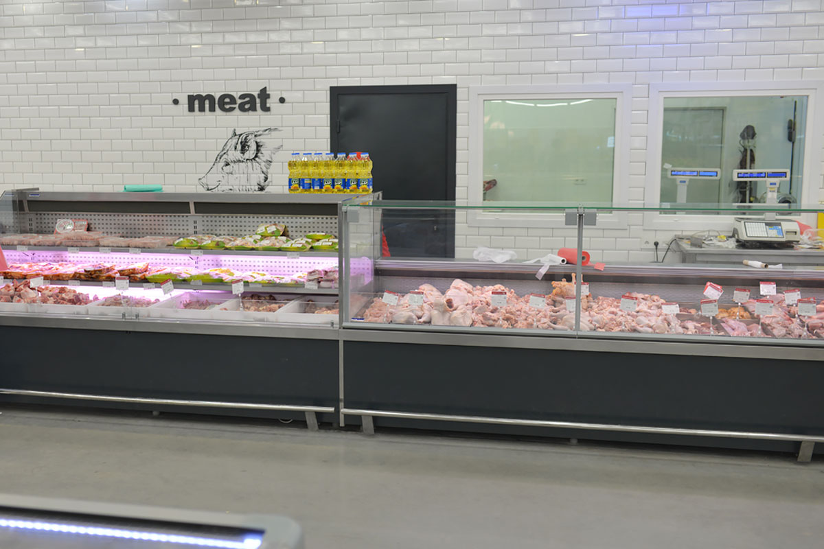 До м’ясного відділу кожен день здійснюються поставки м’яса різних напрямків: курка, свинина, телятина, кролики й індичатина, баранина, язик і так далі. Кожен покупець може побачити: як відбувається обробка м’яса через відкриті вікна у внутрішні цехи.