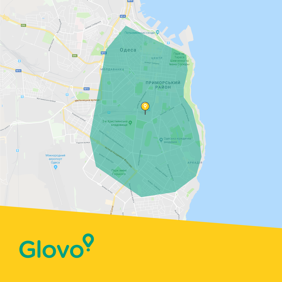 На старті доставка буде працювати в центральній частині Одеси: від Міського саду до парку ім. Горького. Простежити за актуальною картою покриття Glovo у всіх містах можна на сайті.