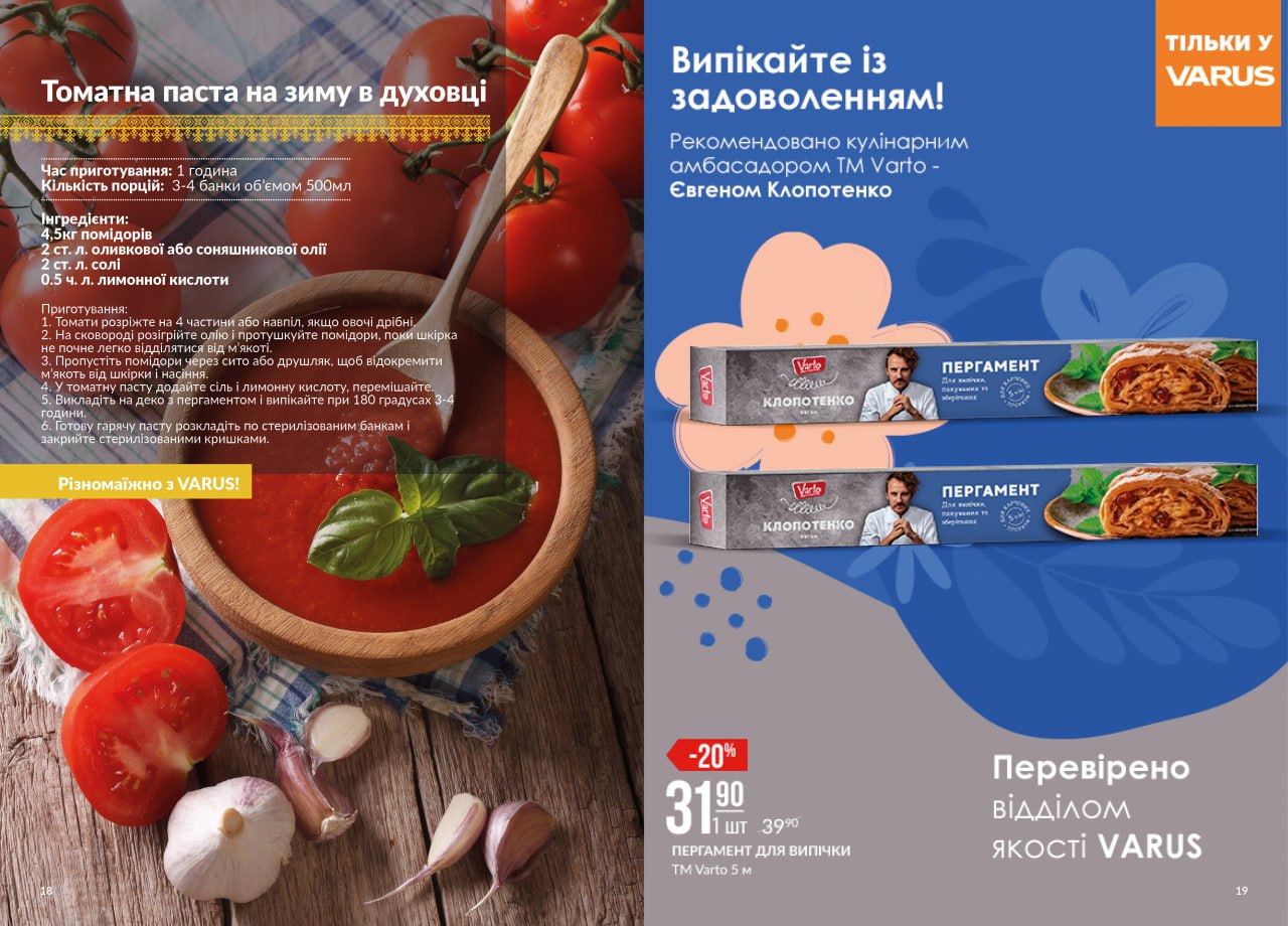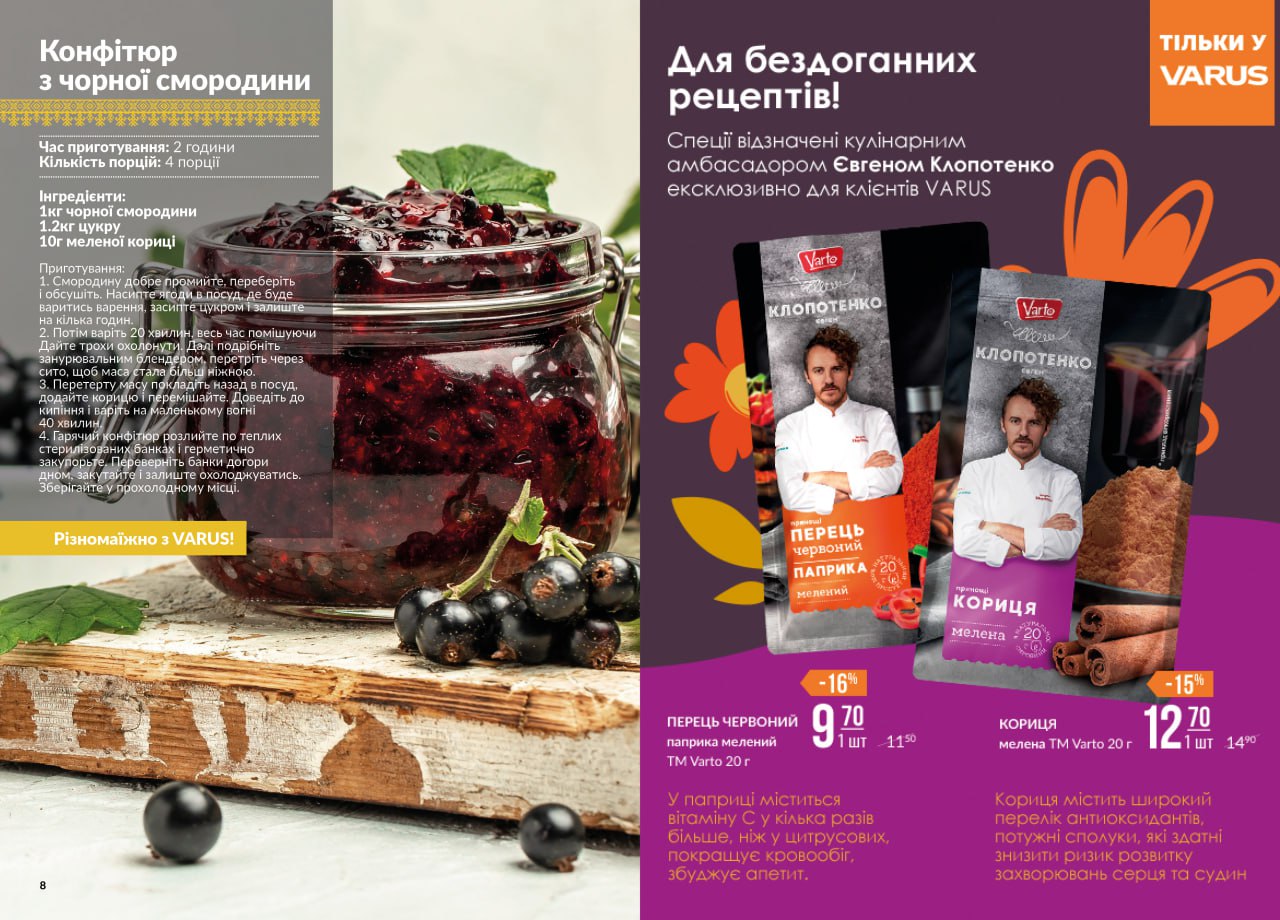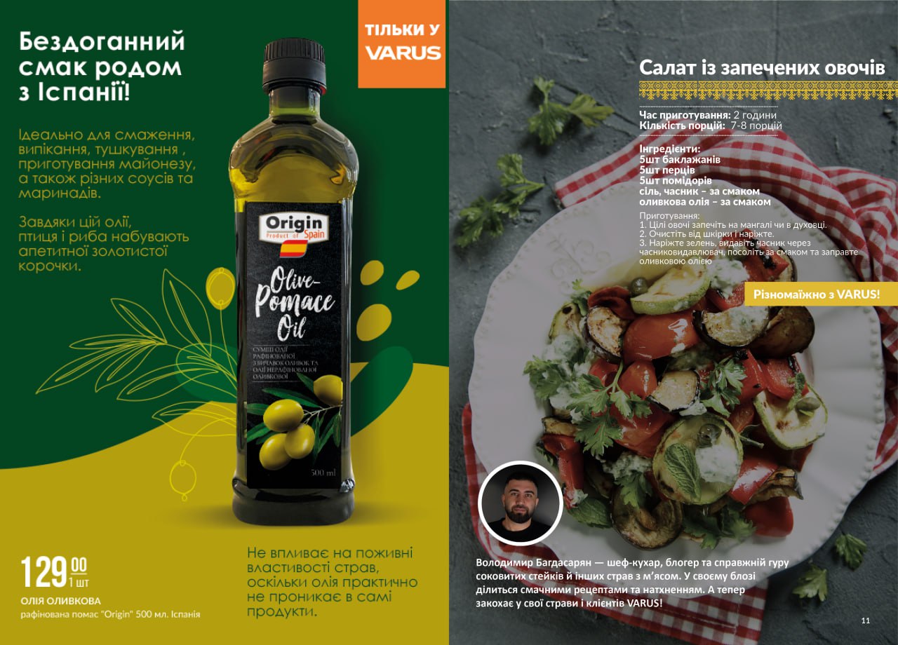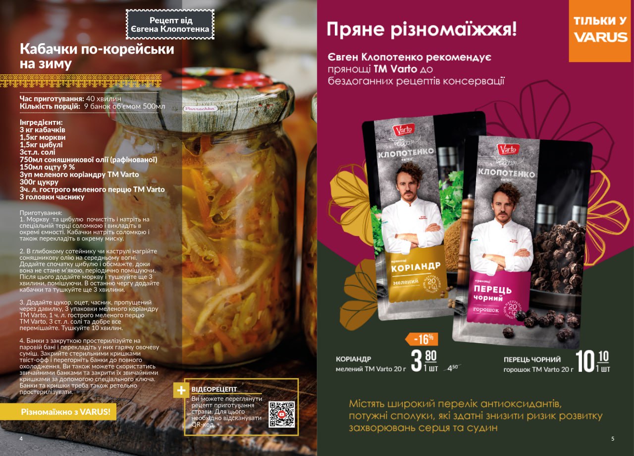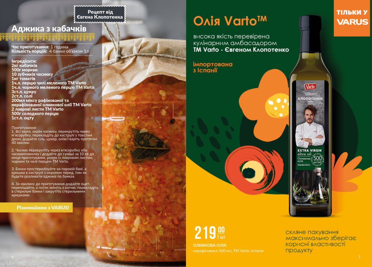 “Каталог «Кулінарна підтримка» — це наш спосіб проявити турботу про клієнтів, полегшити для них вибір і приготування страв. Кулінарні експерти Varus разом з Євгеном Клопотенком ретельно підбирають та складають рецепти, щоб всі інгредієнти були максимально доступними, а процес приготування — простим”, — розповідає Анна Луганська, директор з маркетингу Varus.