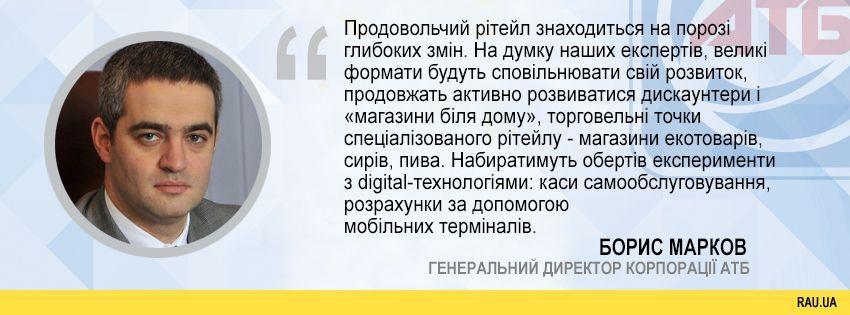 “Продовольчий рітейл знаходиться на порозі глибоких змін. На думку наших експертів, великі формати будуть сповільнювати свій розвиток, продовжать активно розвиватися дискаунтери і «магазини біля дому», торговельні точки спеціалізованого рітейлу – магазини екотоварів, сирів, пива.