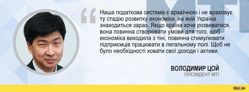 Якщо країна хоче розвиватися, вона повинна створювати умови для того, щоб економіка виходила з тіні, повинна стимулювати підприємців працювати в легальному полі. Щоб не було необхідності ховати свої доходи і активи”.