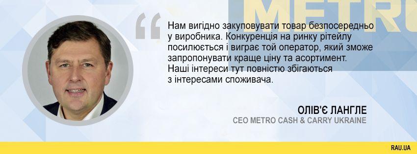 “Нам вигідно закуповувати товар безпосередньо у виробника. Конкуренція на ринку рітейлу посилюється і виграє той оператор, який зможе запропонувати краще ціну та асортимент. Наші інтереси тут повністю збігаються з інтересами споживача”.