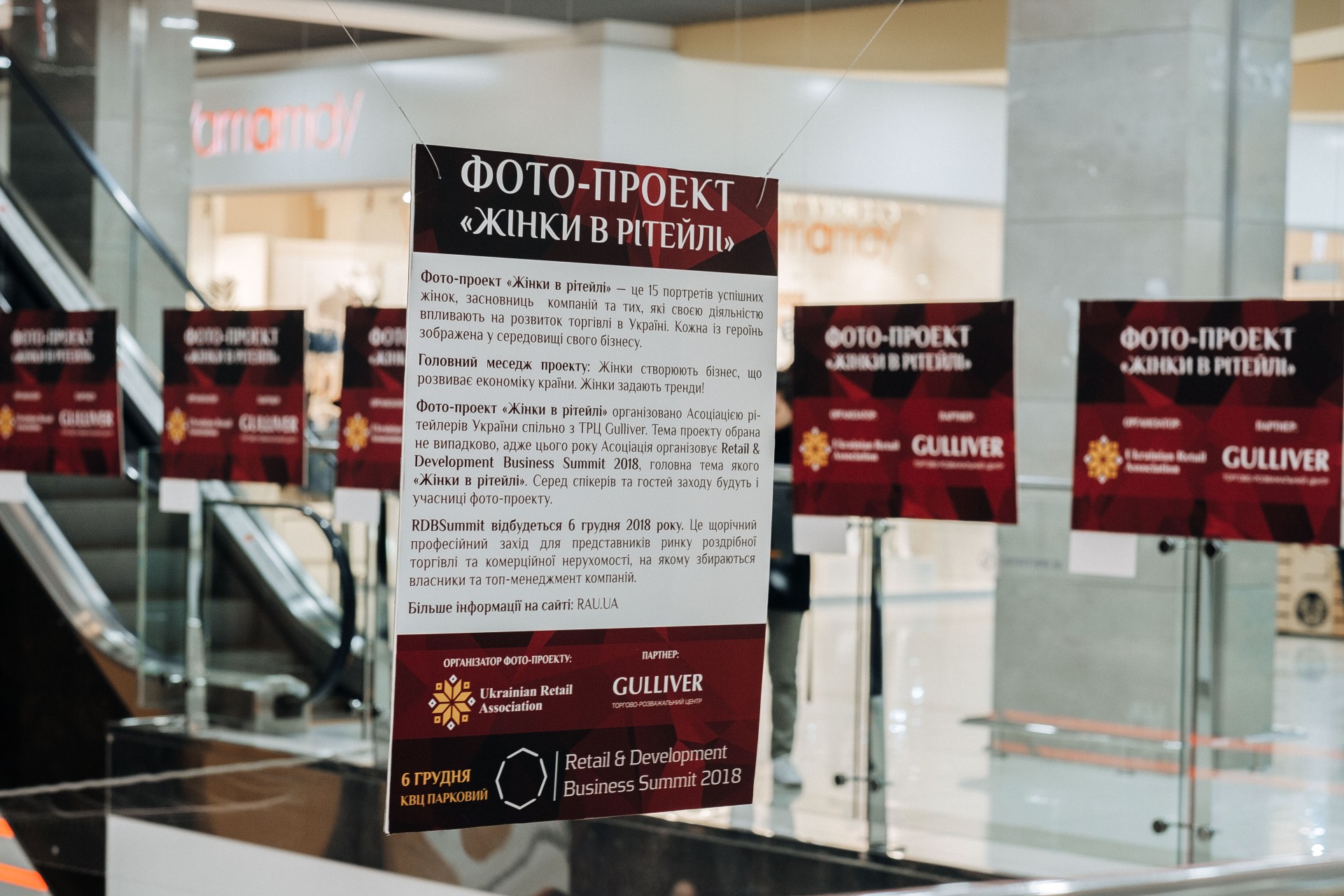 22 листопада на 2-му поверсі ТРЦ Gulliver Асоціація рітейлерів України презентувала виставку «Жінки в рітейлі», приурочену до Retail & Development Business Summit, який пройде 6 грудня 2018 року.