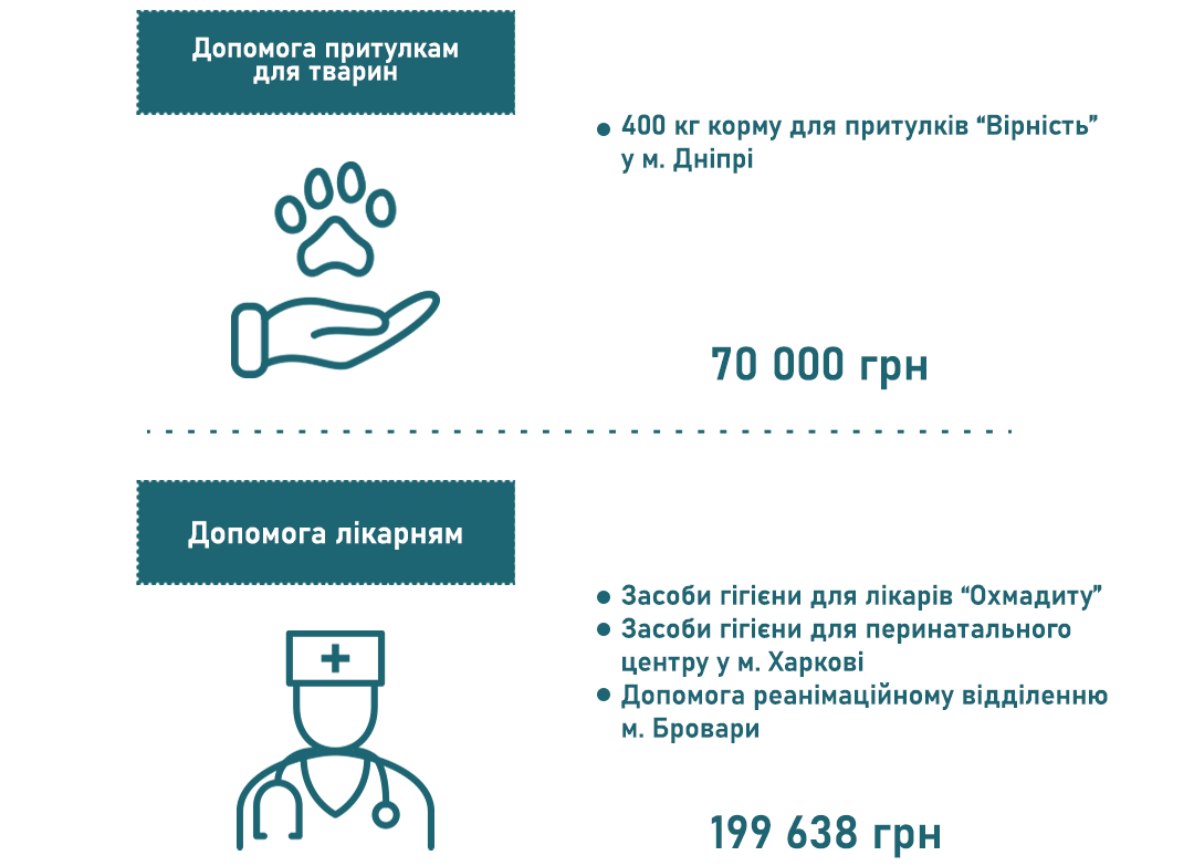 - Допомога безпритульним тваринам — 70 000 грн