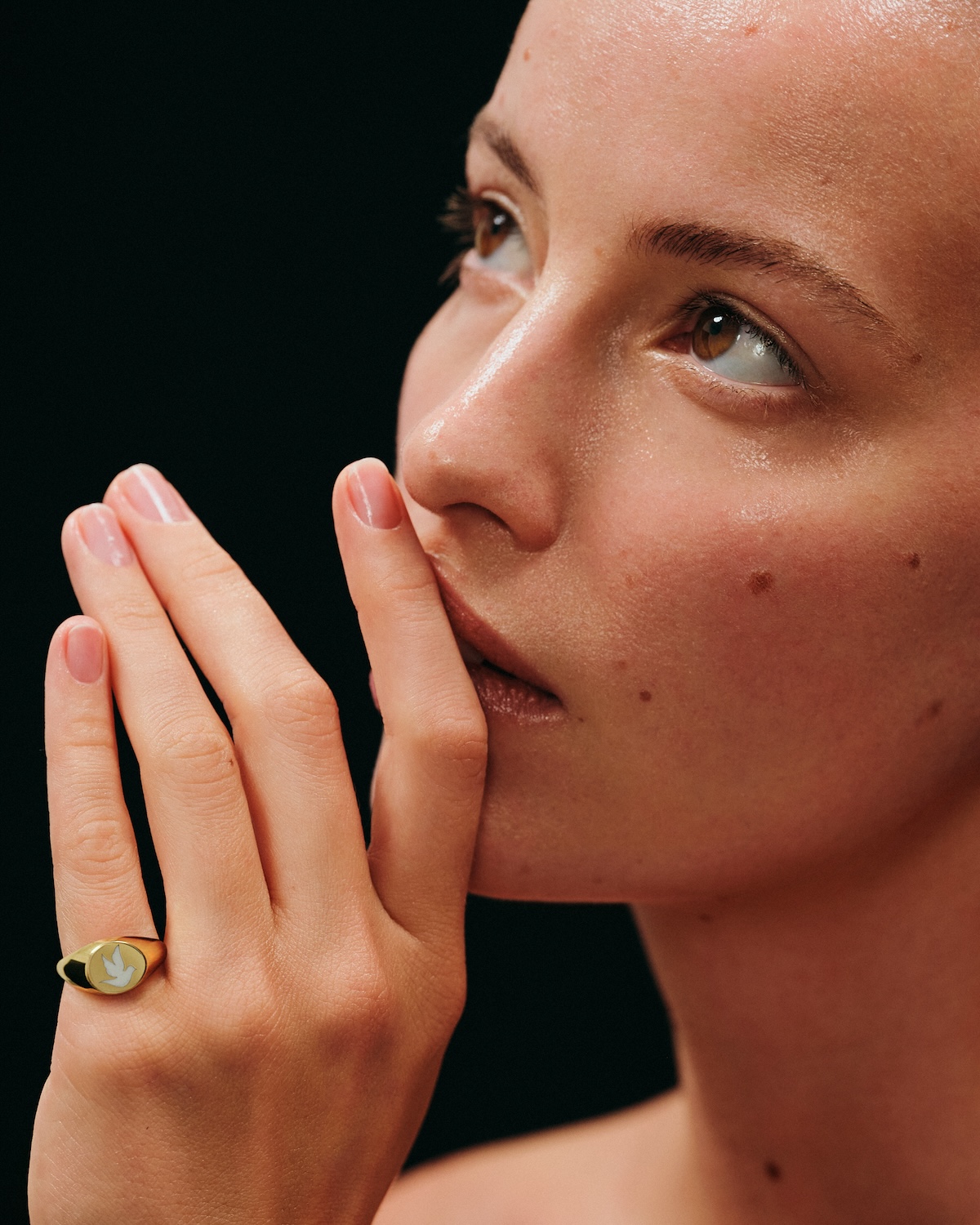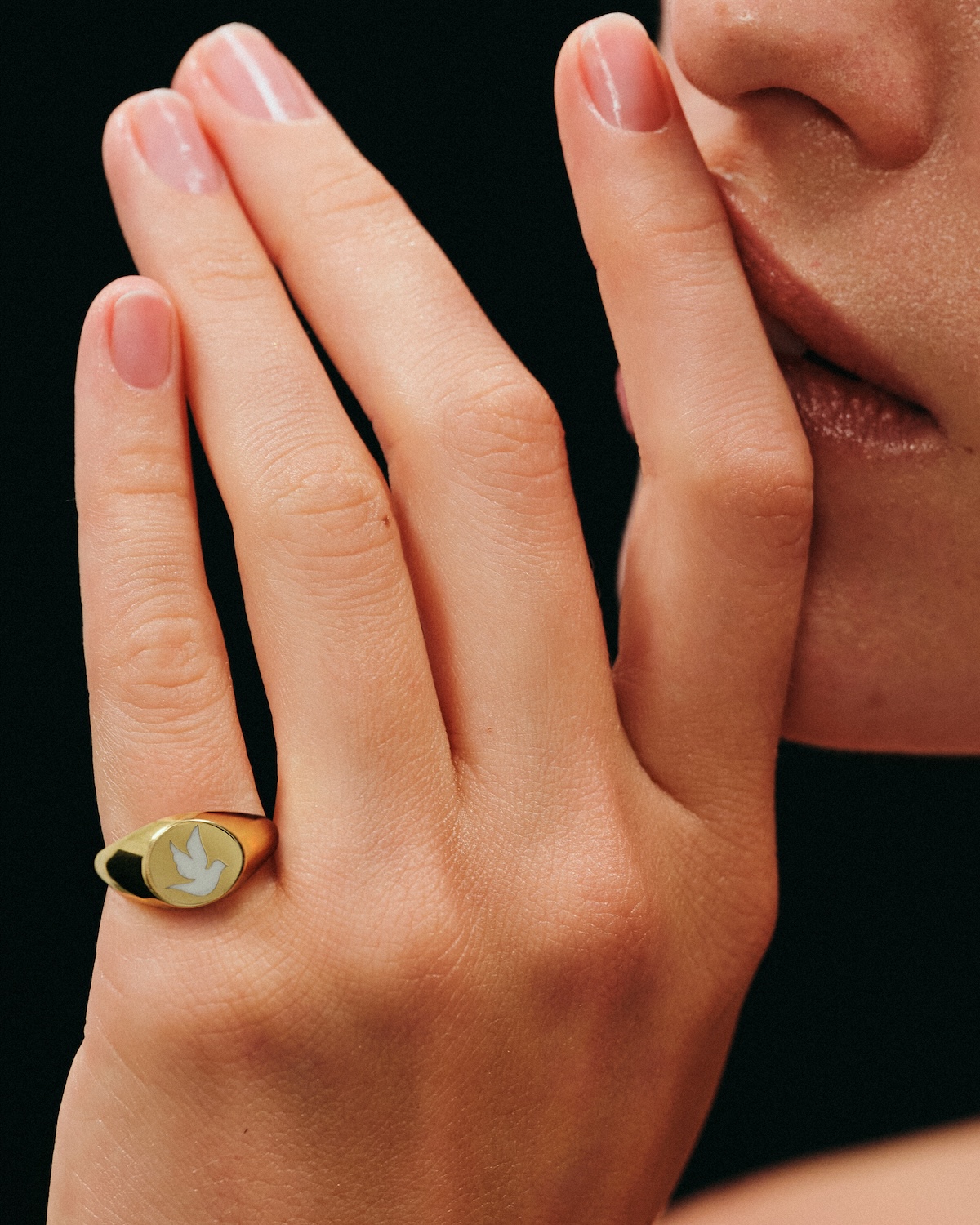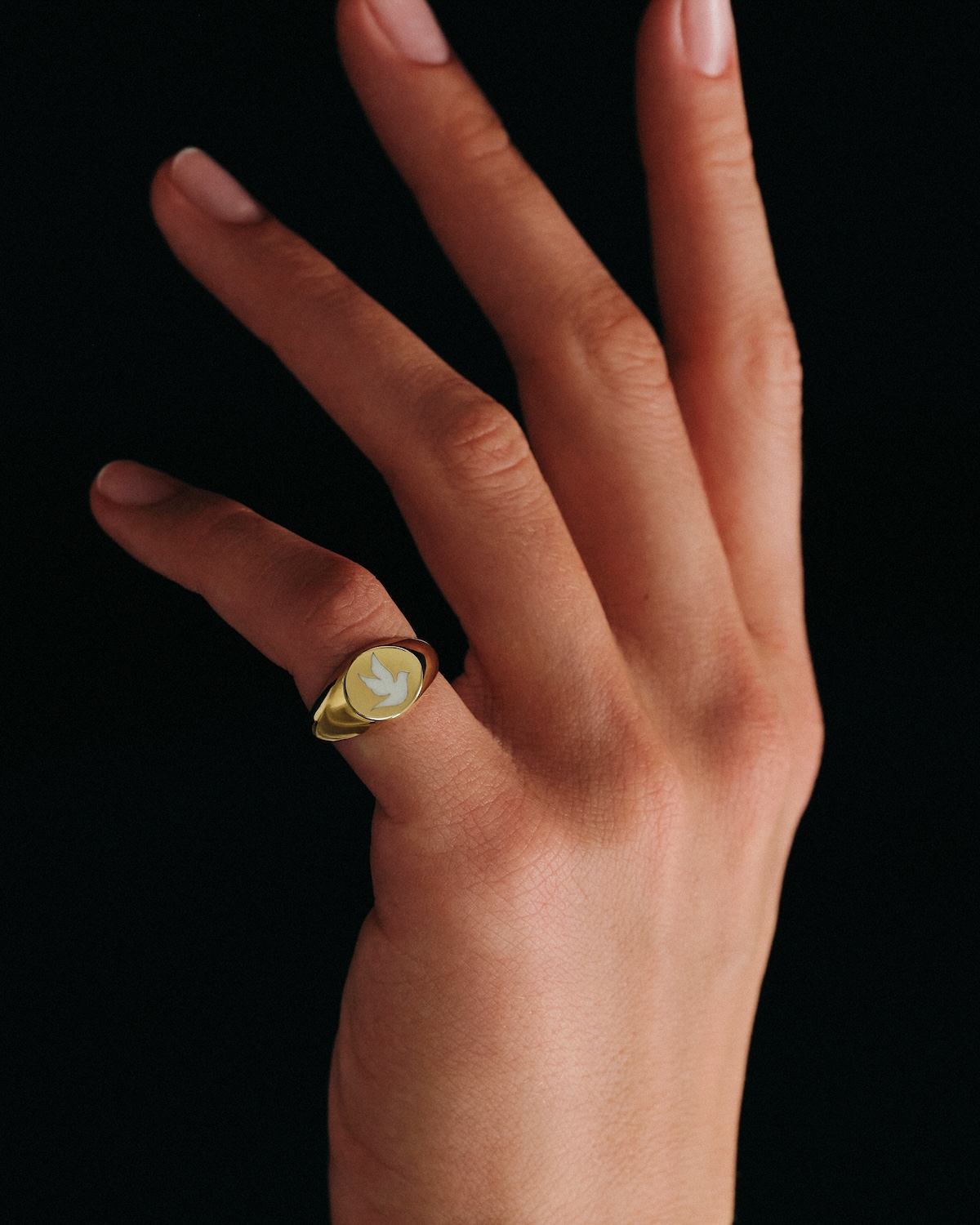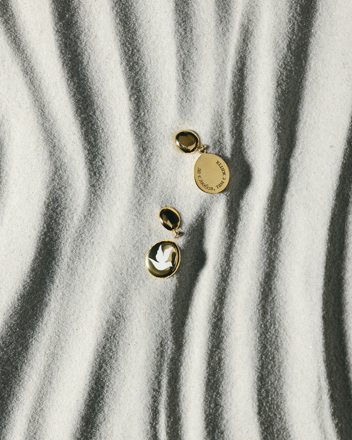 До лінійки увійшли підвіс, два види сережок та каблучка-печатка. Кожен виріб оздоблено зображенням голубки — символу любові, що виконується емаллю вручну майстрами-ювелірами бренду. Зворотній бік прикрас містить символічне гравіювання «Де є любов, там є життя» — цитата, що послужила головним натхненням для дизайнерки Валерії Гуземи.