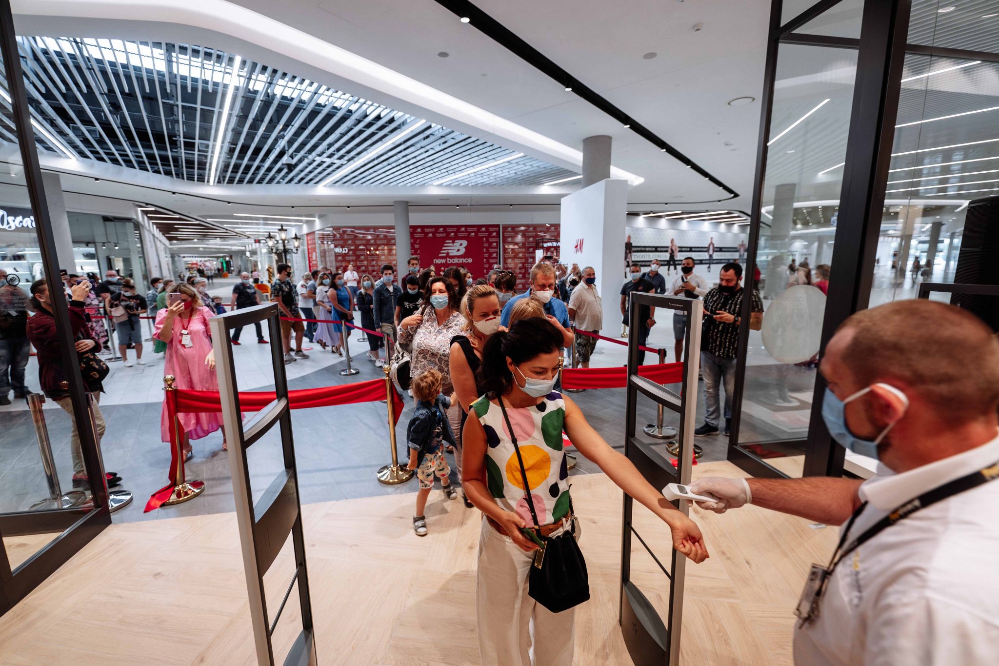 Червону стрічку в магазин перерізали рівно об 11:00. Щоб перші покупці не юрмилися і могли дотримуватися один з одним дистанцію, вхід в магазин відгородили. Незважаючи на те, що на вході в торгово-розважальний центр охорона вже вимірювала у відвідувачів температуру, в H&M цю процедуру повторили. Втім будь-яких затримок на вхід це не викликало.