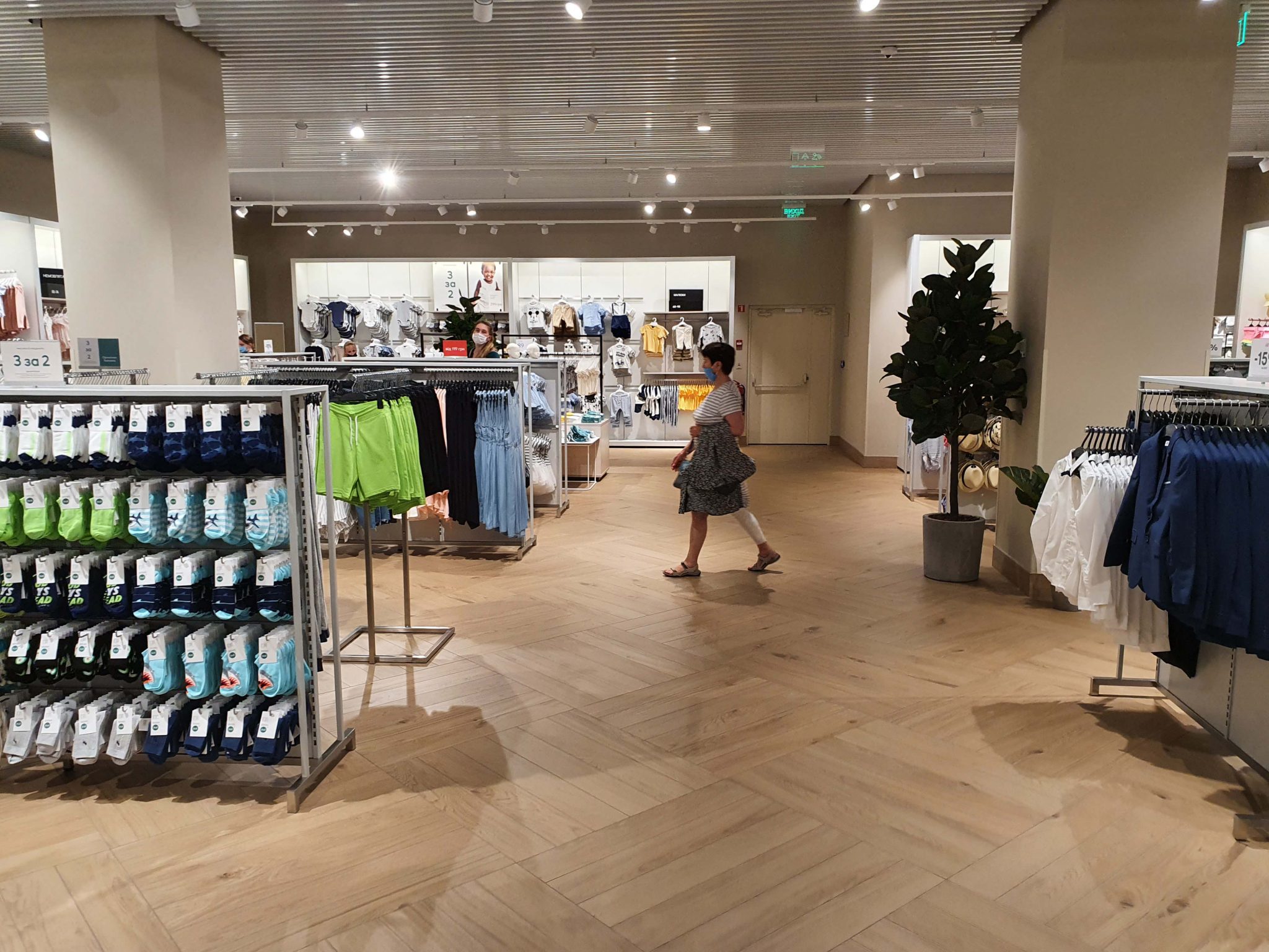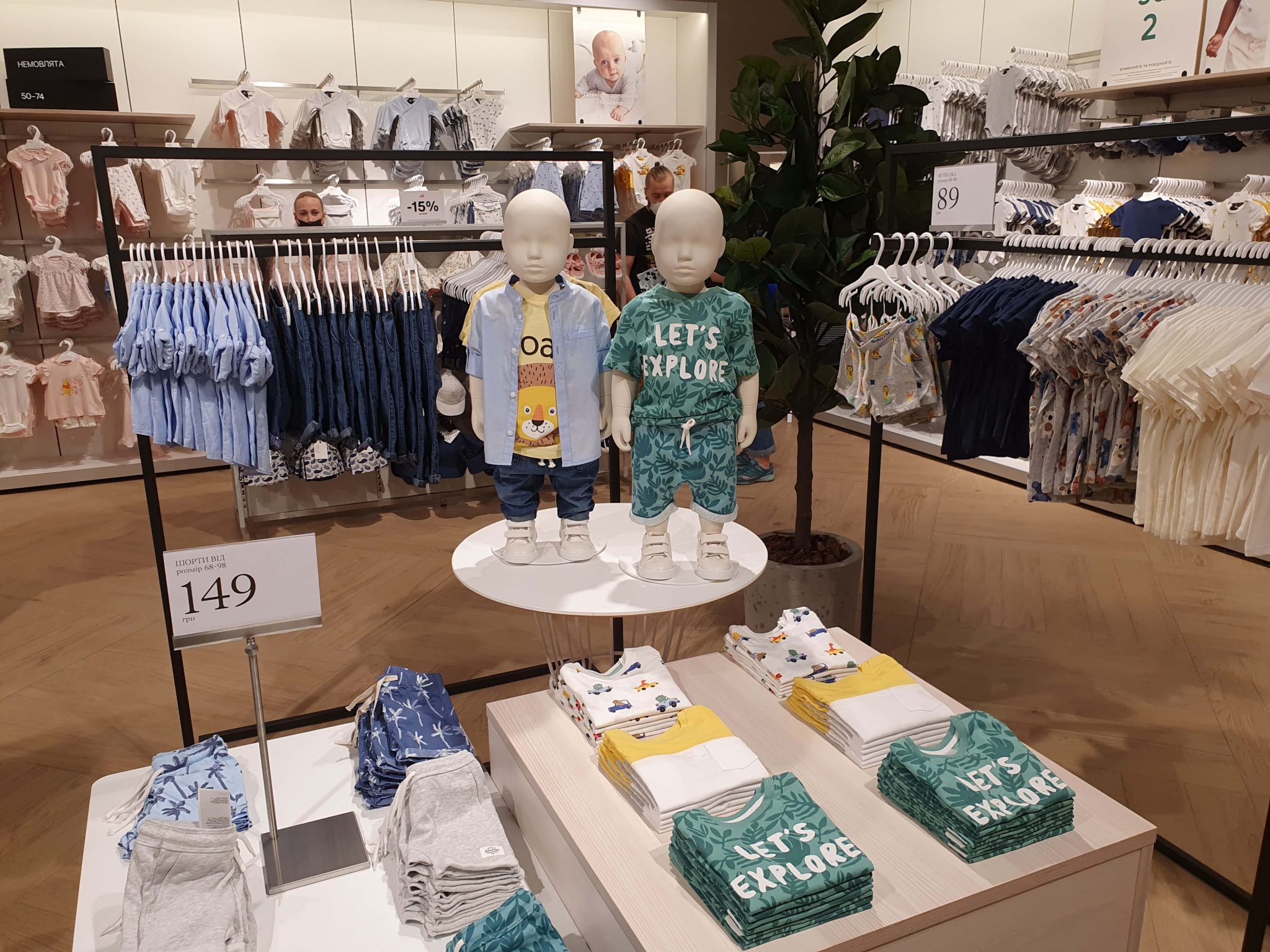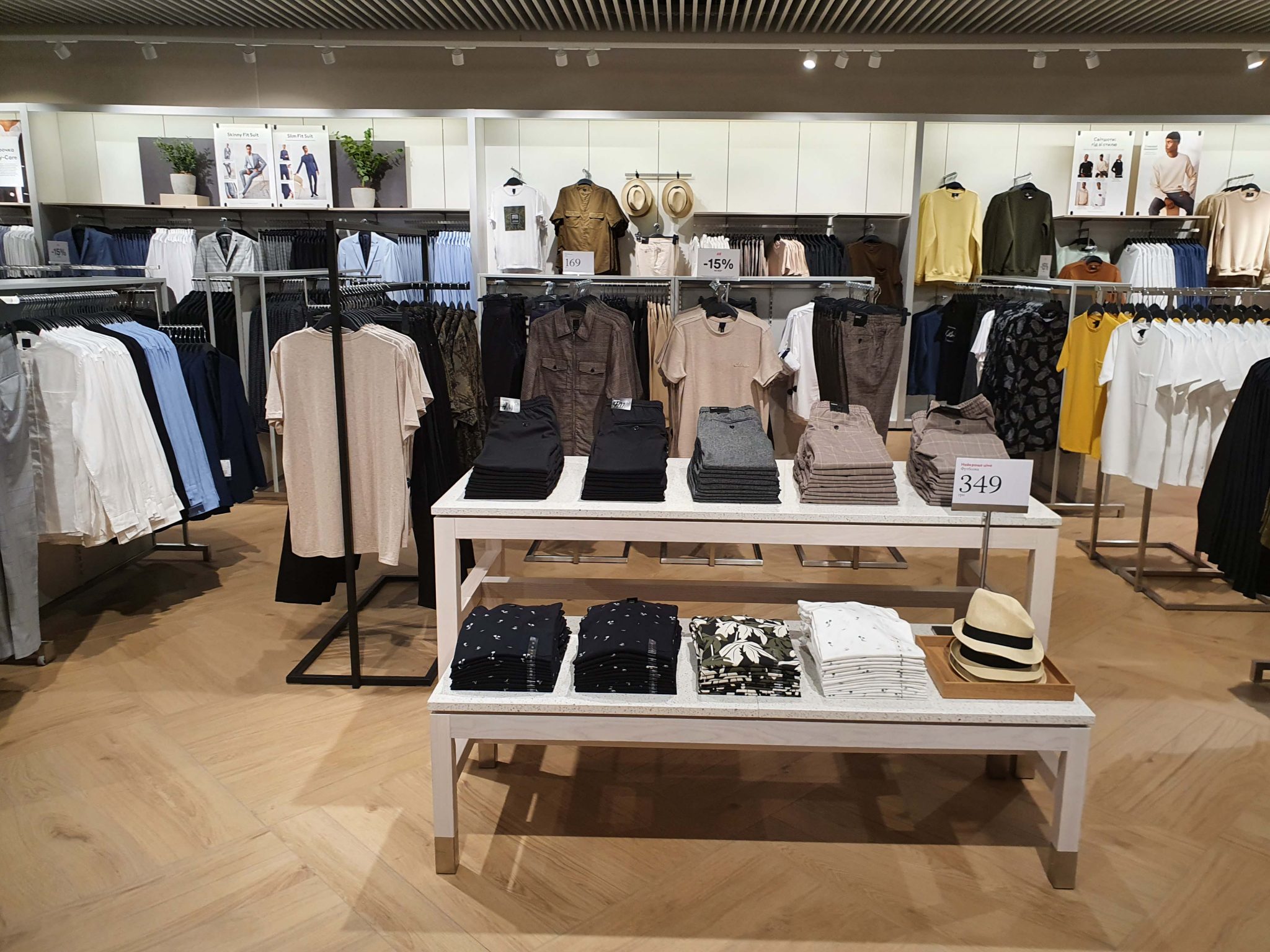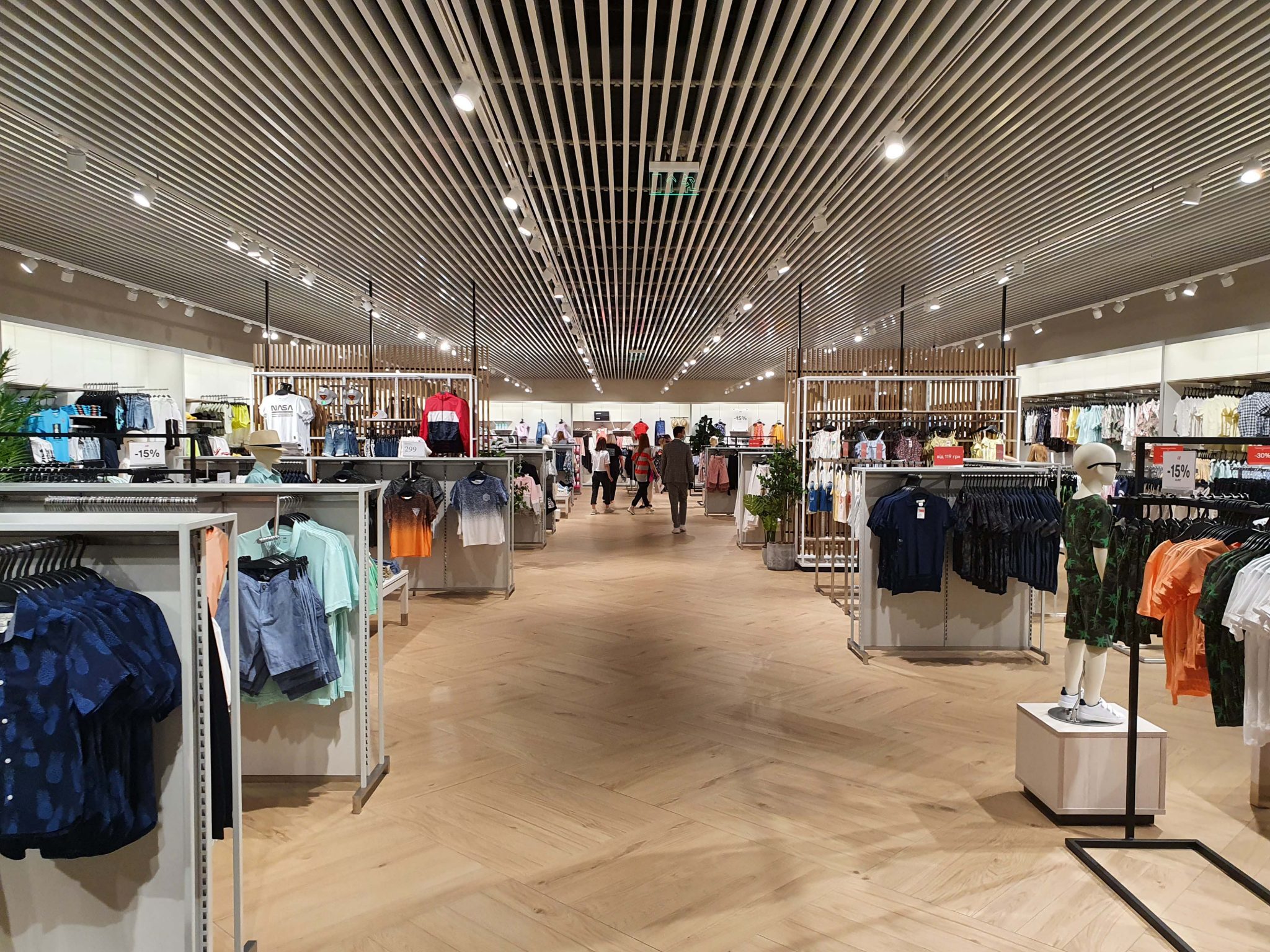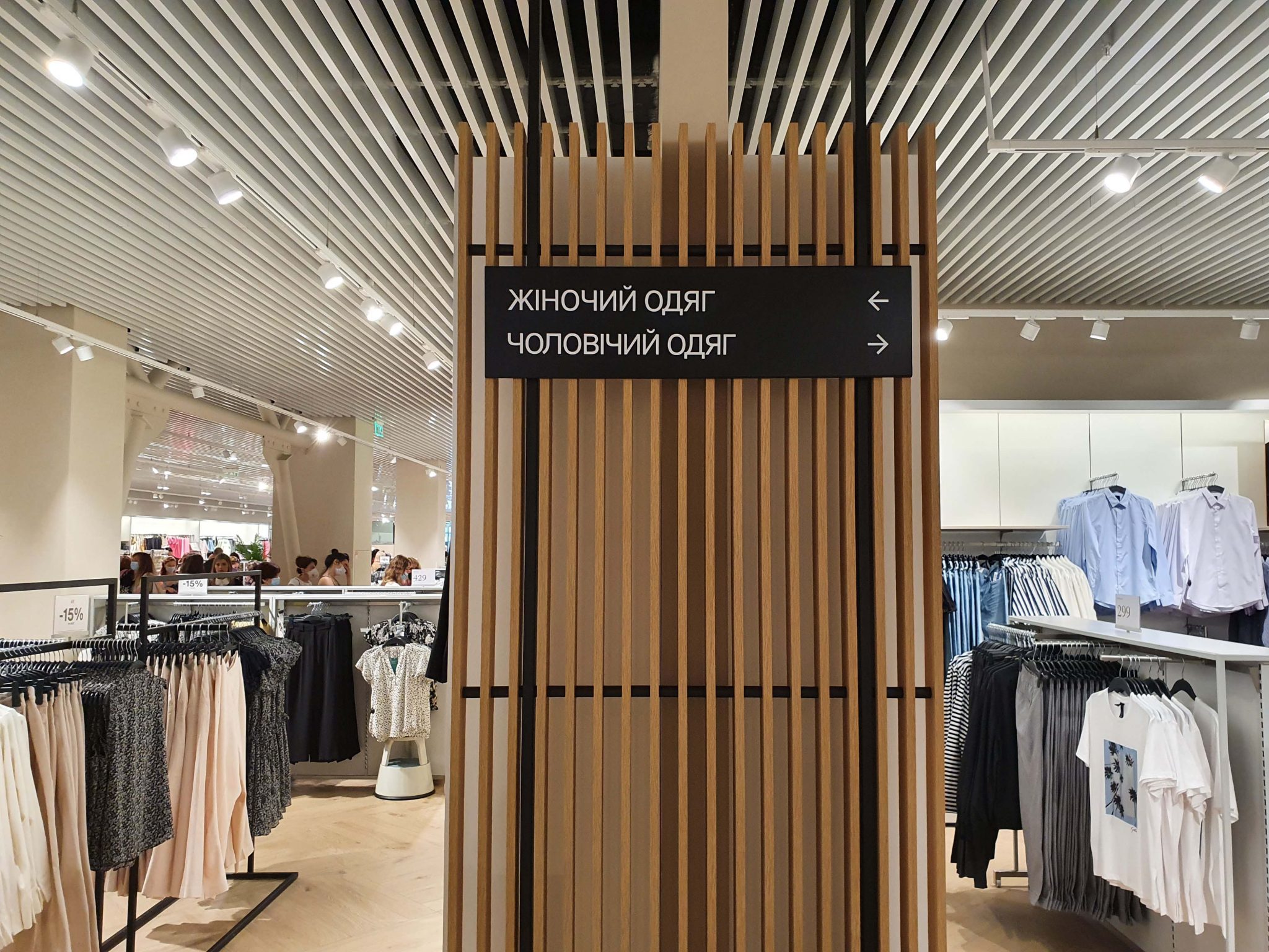 Концепція нового магазину H&M схожа на ту, що представлена в ТРЦ River Mall – зі світлим і затишним інтер’єром, великою кількістю дерева, наявністю рослин і просторими примірочними. Окремо, біля однієї з примірочних, встановлена лаундж-зона.