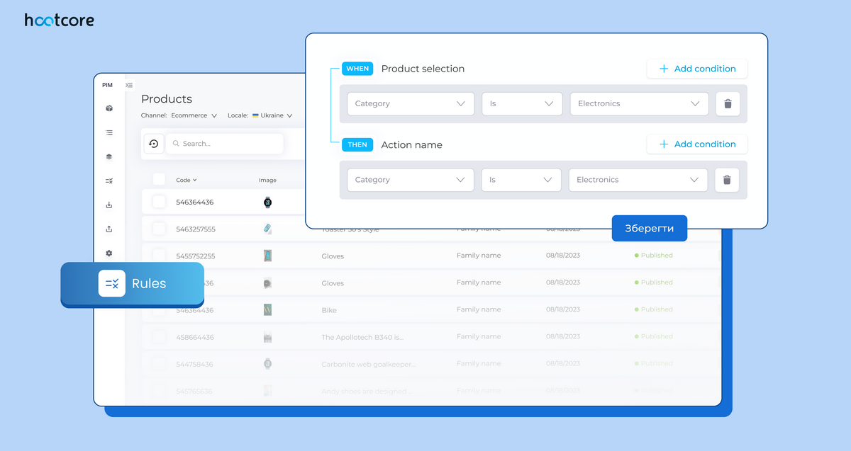 HootCore PIM допомагає знизити операційні витрати, покращити точність даних, прискорити запуск товарів, забезпечити узгодженість бренду та легко масштабувати бізнес. До її ключового функціоналу відносяться:
