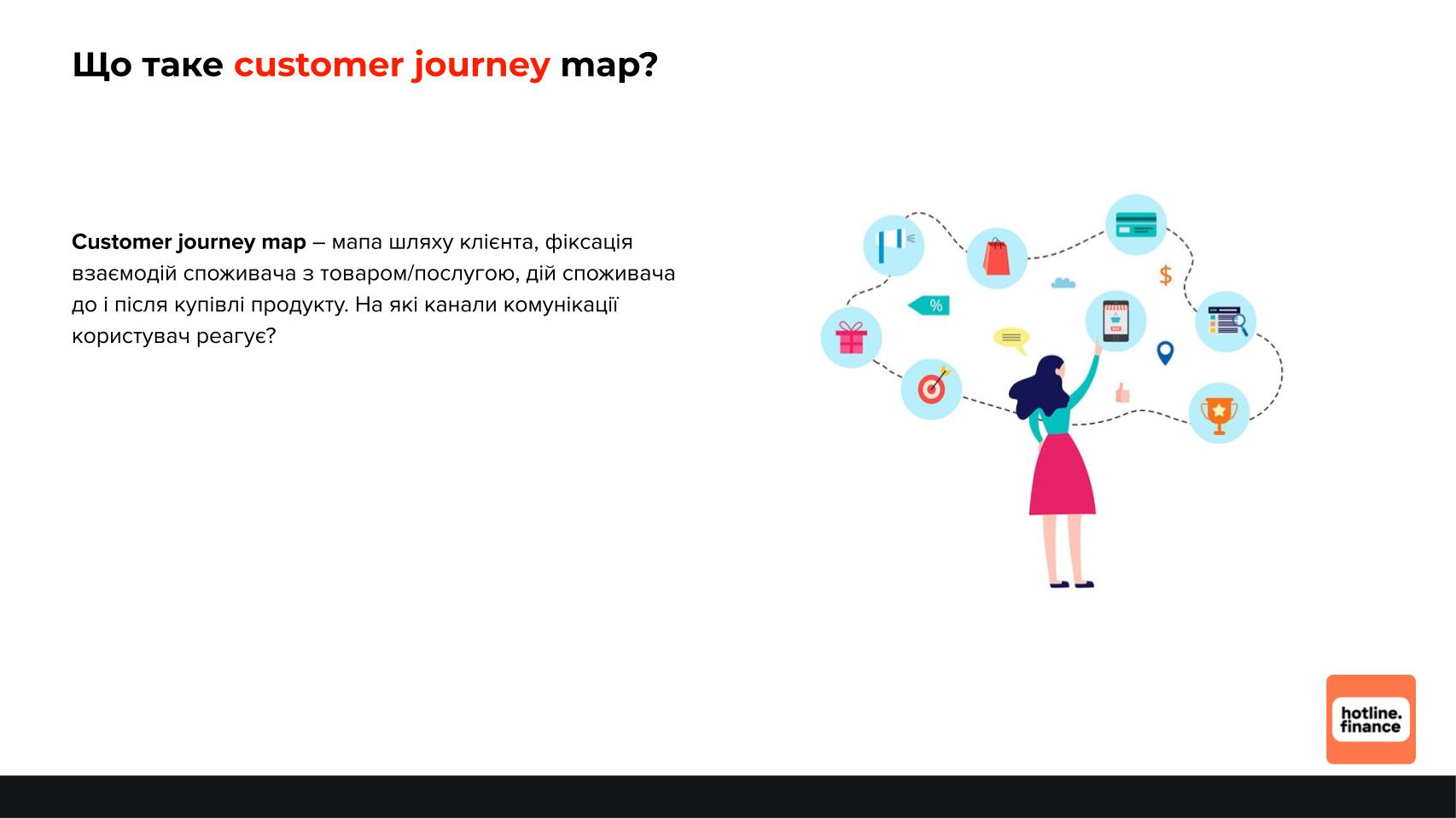У контексті Hotline Finance, що працює в системі Retention (утримання клієнтів), Customer Journey (шлях клієнта) охоплює не лише етапи знайомства та купівлі, а й продовжується на весь життєвий цикл користувача (Life-Cycle). Комунікація з клієнтом підтримується доти, доки він залишається активним – читає повідомлення або реагує на них у будь-якому каналі.