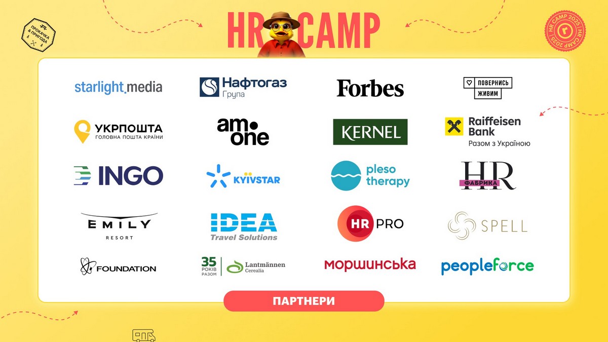 Масштаб HR Camp 2025 був би неможливим без підтримки партнерів. 20 компаній долучилися до організації події, зробивши її максимально корисною для всіх учасників. Це ще раз доводить: бізнес в Україні готовий інвестувати не лише у свої команди, а й у розвиток суспільства та підтримку ЗСУ.