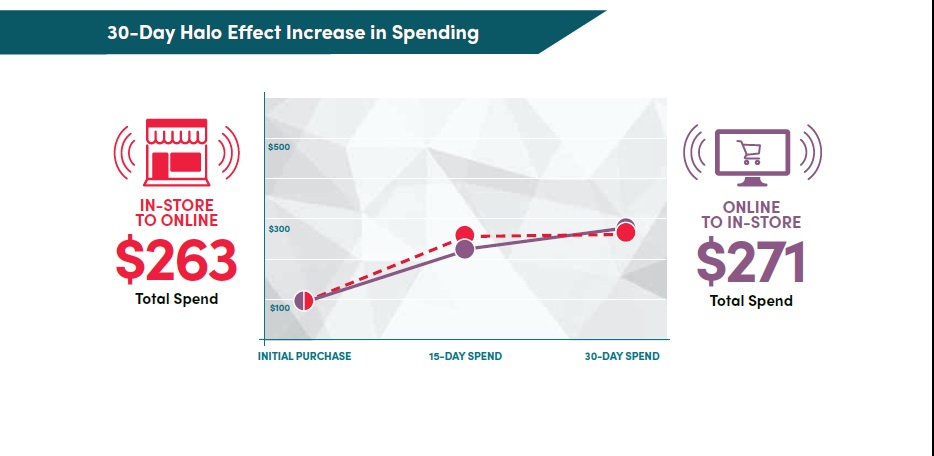 Той, хто купив в інтернеті, продовжував скуповуватися в звичайних магазинах цього ж бренду. І навпаки: покупці з фізичних торгових точок починали щось купувати в інтернет-магазині. Загальні витрати в такому разі значно вище, ніж первісна покупка, незалежно від того, чи була вона зроблена онлайн або офлайн.