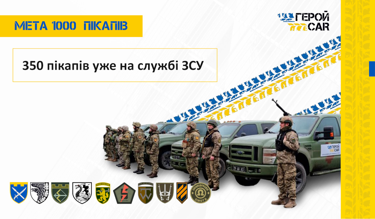 І вже понад 350 пікапів перебувають в ЗСУ, проте ціль – 1000 одиниць.