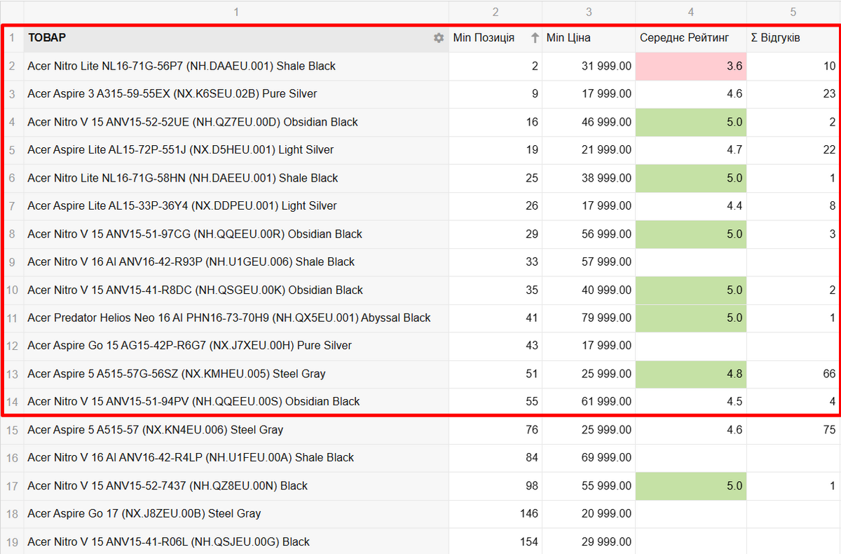 Як ми продемонстрували вище, комбінація цих метрик дає важливу інформацію про цінову стратегію конкурентів: