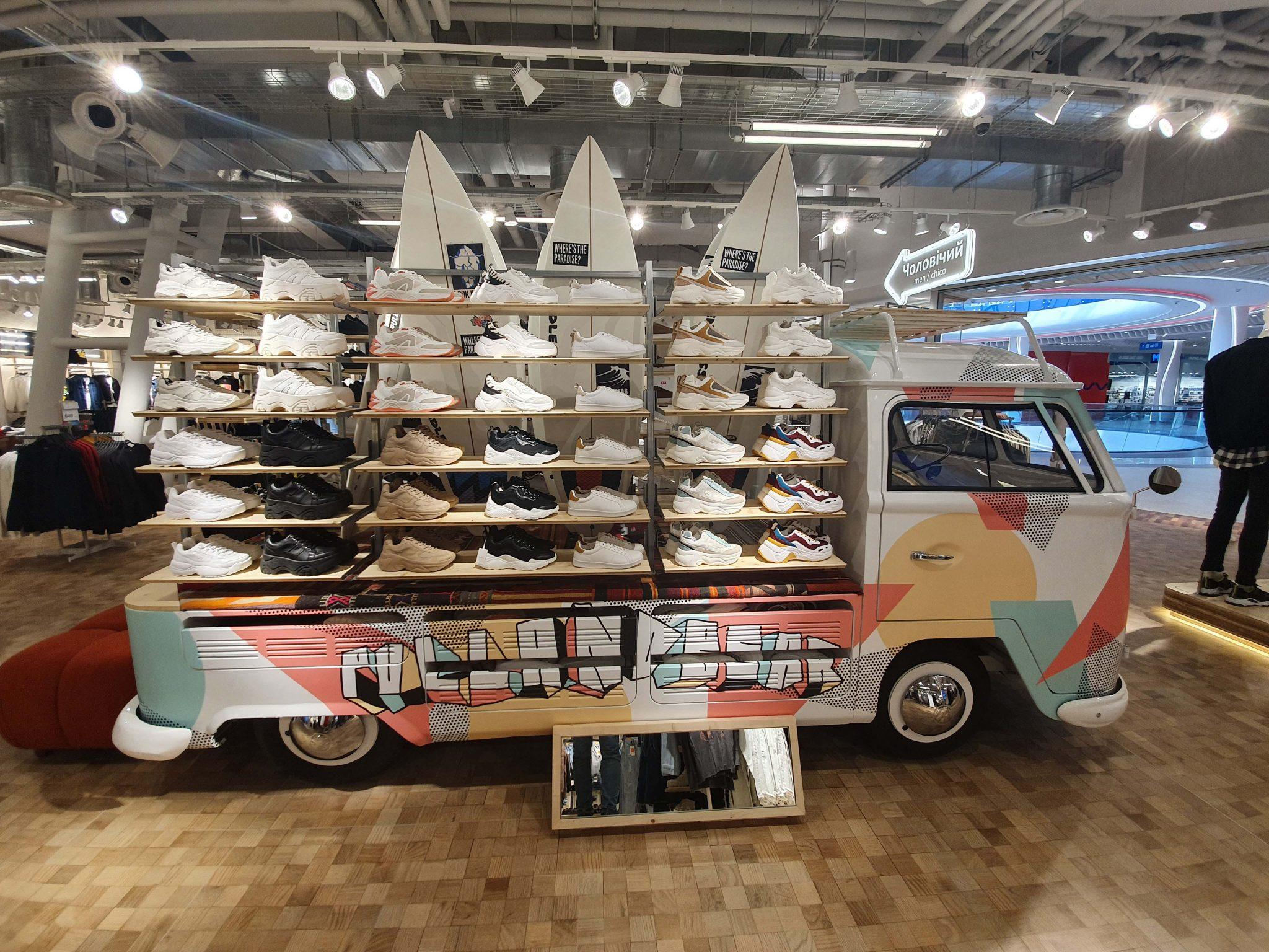 Магазин одягу для молоді Pull&Bear розмістився на площі 798 кв. м. Вже традиційною концептуальною фішкою магазину став помаранчевий фургон з взуттєвим стендом і дошками для серфінгу, розташований посеред торгової точки. Колекції бренду поєднують спортивний одяг з повсякденним casual. Про засади Pull&Bear говорить його назва – «натягни і носи». Оновлення колекцій в магазині відбувається двічі на тиждень. Як свідчить легенда, дизайнери бренду бродять по нічних клубах та інших місцях тусовок молоді, щоб почерпнути натхнення для нових неформальних луків.