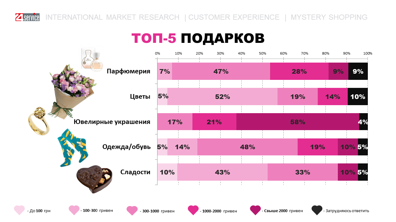 Компанія 4Service провела дослідження до дня Святого Валентина з метою з’ясувати, які бренди обере український споживач і які чинники впливають на вибір місця для шопінгу, як відрізняються переваги різних вікових категорій респондентів.