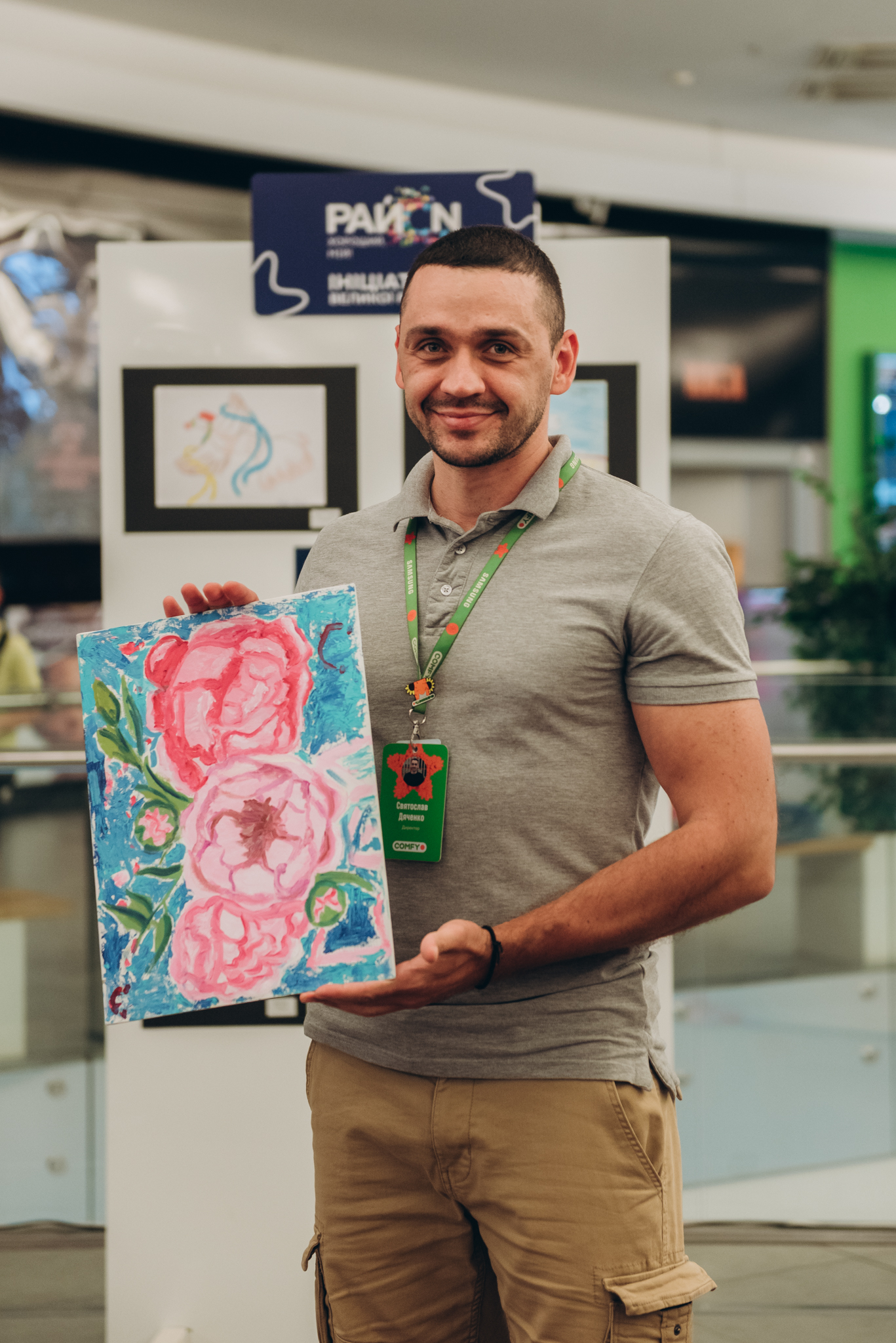 Талановиті діти команди ТРЦ РайON також активно підтримали проект. 7-річний Захарій Корнута займається художньою творчістю вже рік – юний художник задонатив 6 робіт, які були продані на благодійному аукціоні та ярмарку. «Почувши про ініціативу, Захарій прийняв рішення взяти участь – син відібрав серед своїх творів такі роботи: “Мама”, “Півонії”, “Японія”, “Посейдон”, “Льдовиковий період” та “Ісус” і передав їх організаторам», – поділився тато юного художника, Head of Leasing Arricano, Денис Корнута.