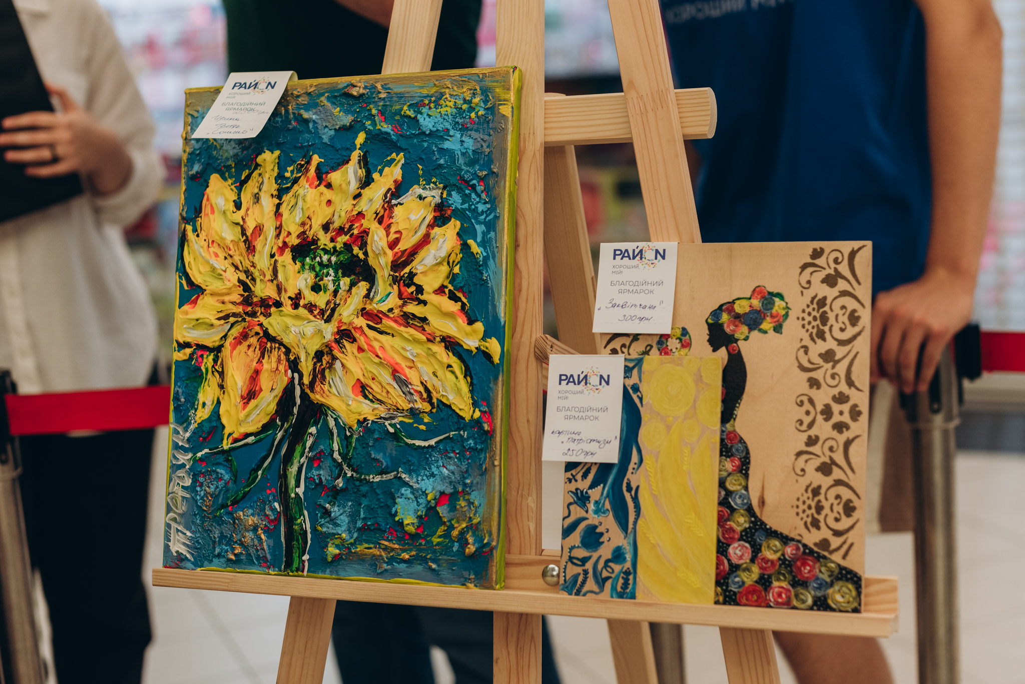 Кульмінацією проекту стали виставка художніх творів і благодійний ярмарок. 26 серпня відбулось офіційне відкриття виставки та благодійний аукціон, у якому активну участь взяли партнери ТРЦ РайON – Comfy, Фокстрот, Сільпо, Будинок іграшок, LC Waikiki, Світ шкіри та хутра, Trend, які зробили свій внесок у допомогу й підтримку.