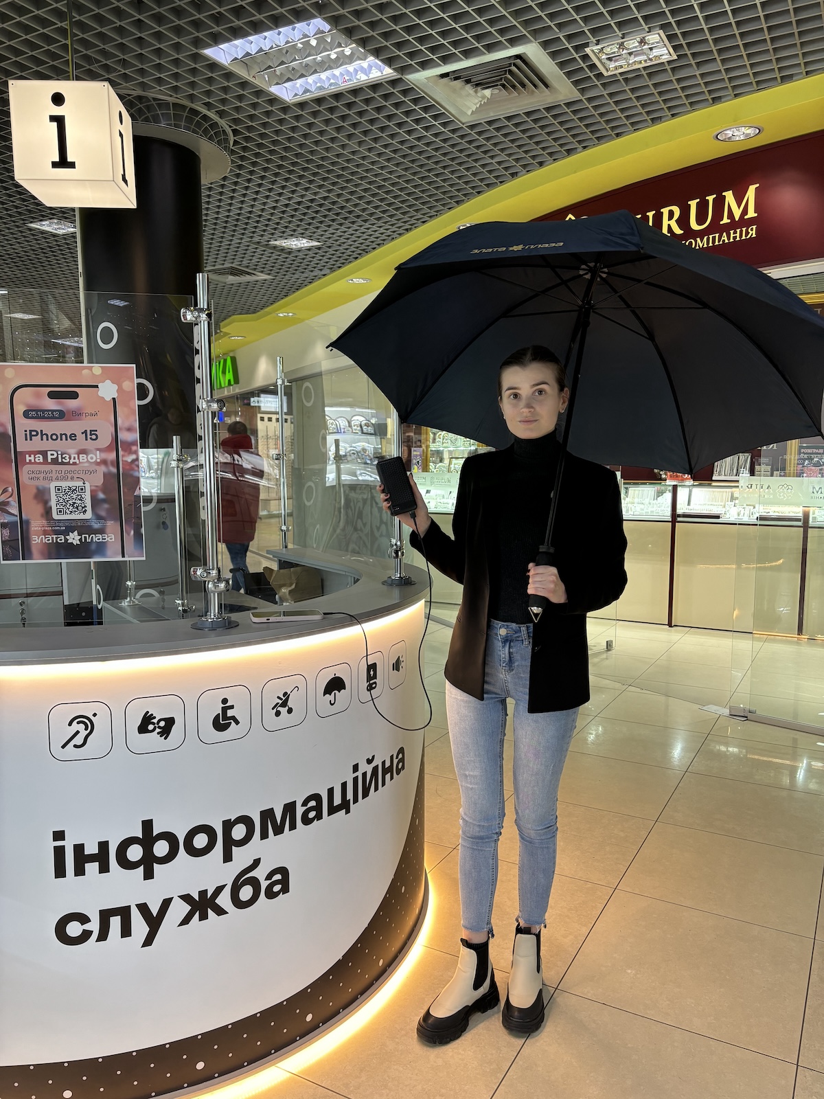 5% українців мають порушення слуху різної складності, а війна ще більше загострила ситуацію — понад 30% військових отримали порушення слуху внаслідок вибухів і травм. Для комфортної комунікації торговельний центр запровадив систему для спілкування з людьми з вадами слуху. Також адміністратор ТРЦ спілкується з нечуючими людьми за допомогою додатку жестової мови УТОГ та зі слабочуючими людьми завдяки підсилювачу звуку — індукційній петлі.