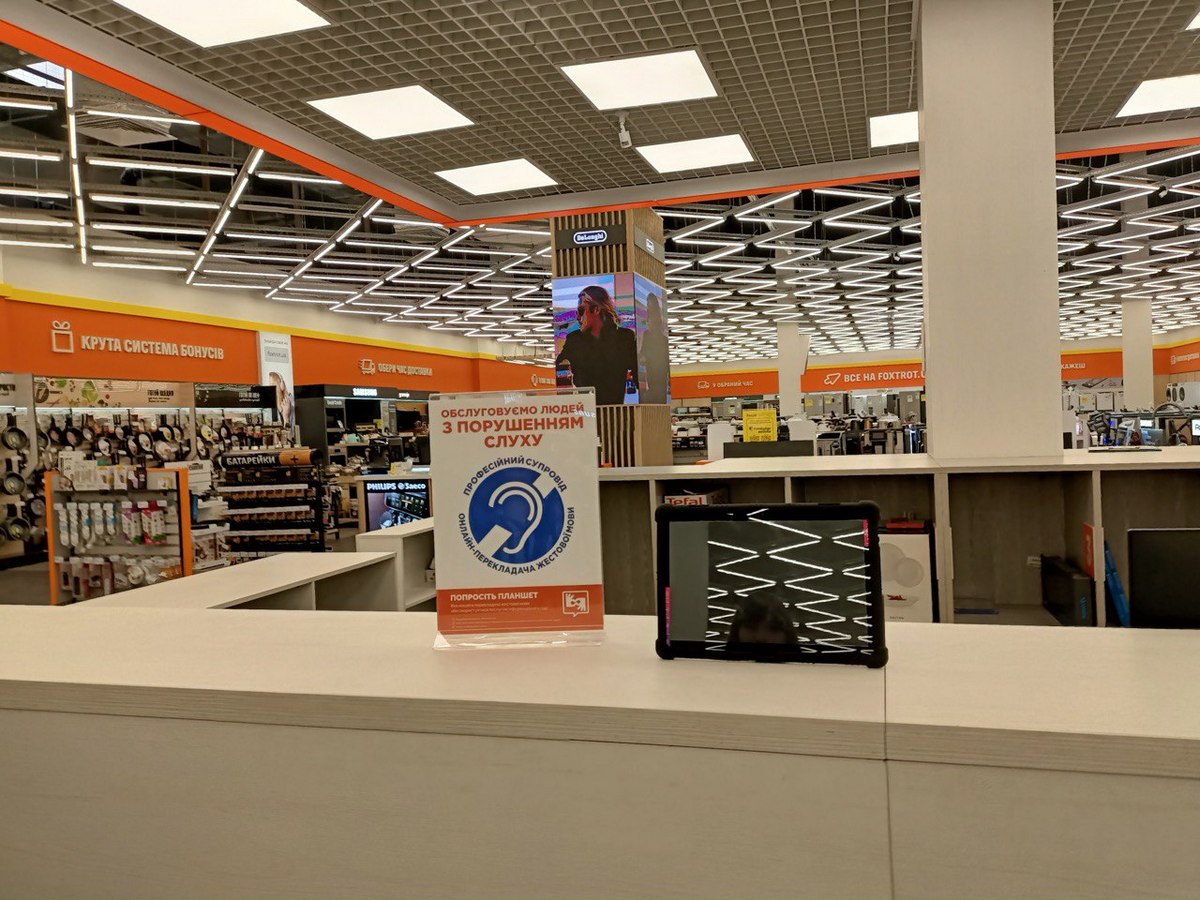 Foxtrot створив революційний проект для людей з порушенням слуху, інтегрувавши цифрові сервіси, які забезпечують рівні можливості комунікації. Онлайн-перекладачі жестової мови працюють як в магазинах (20 локацій у 14 містах), так і на сайті компанії.