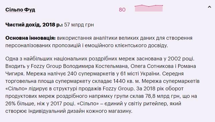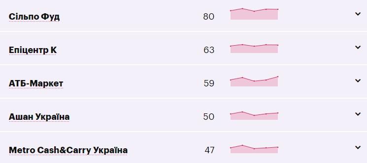 Серед топ-5 найбільших українських рітейлерів, згідно з даними індексу, тільки мережа Сільпо подолала бар’єр в 75 балів, а в категорії «Інноваційність бізнес-процесів», експерти дали Сільпо максимальні 90 балів серед усіх рітейлерів.
