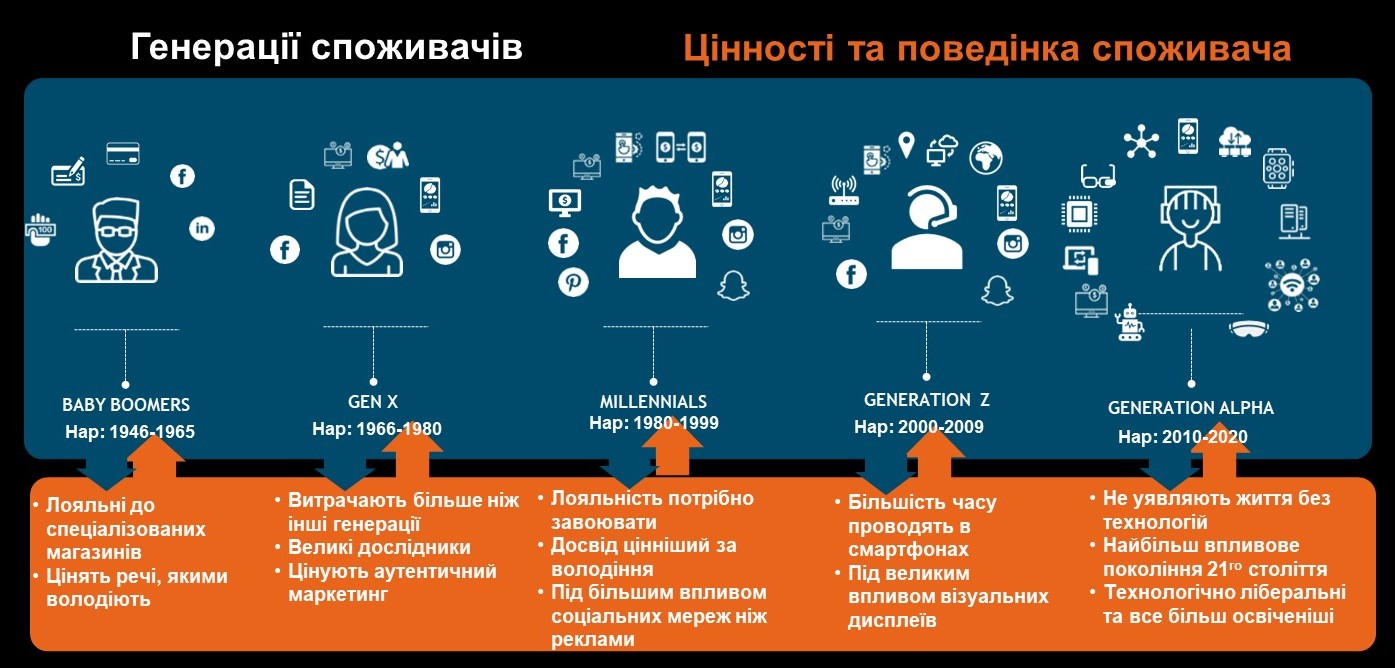 Є два покоління покупців, чия споживча поведінка в найближчі роки буде визначати розвиток рітейлу – це покоління Z (народжені після 2000 року) і Alpha (народжені після 2010-го). Як саме будуть себе вести в майбутньому ці споживачі – не зовсім ясно.