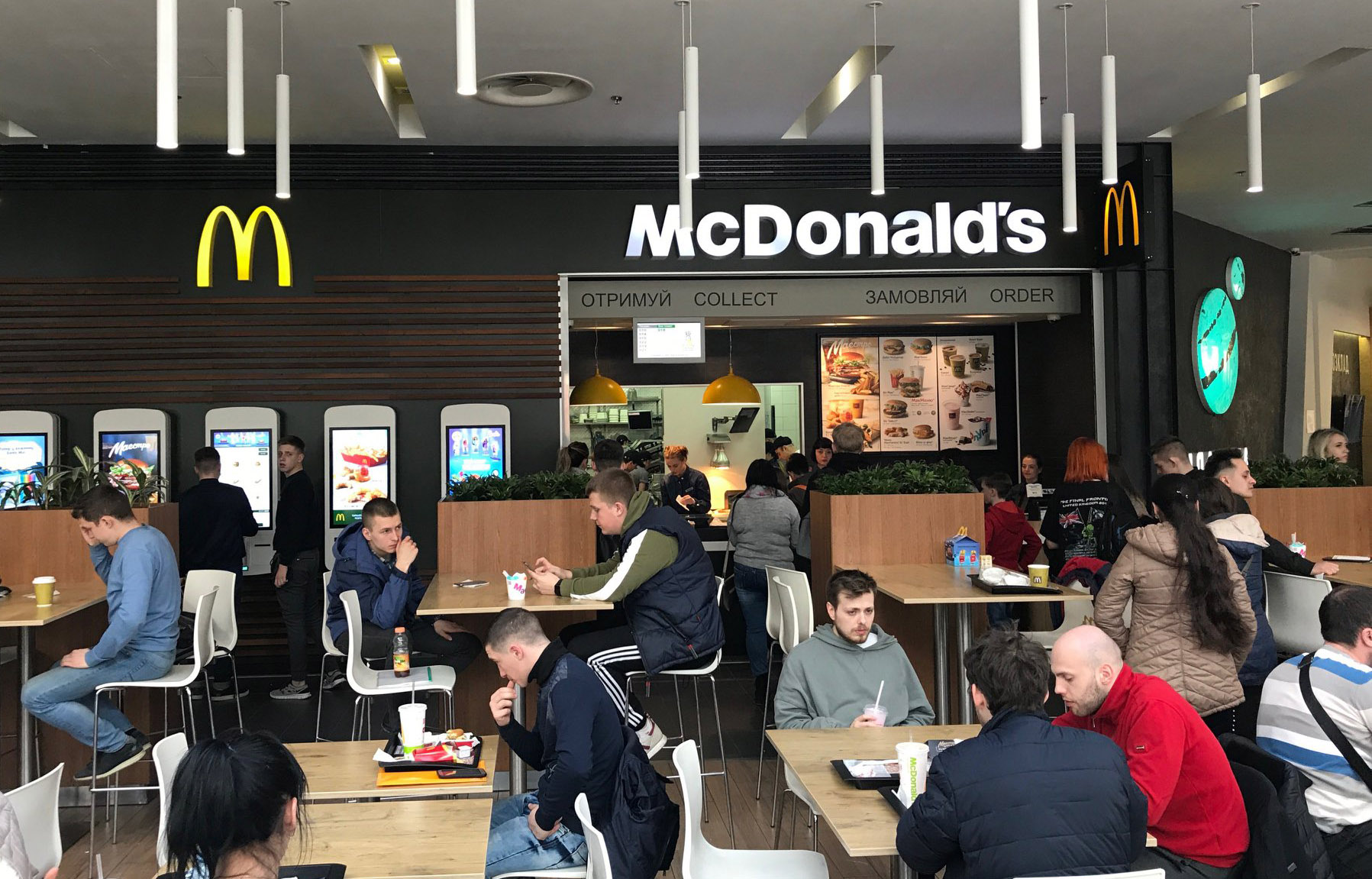 Ти робиш замовлення, здійснюєш оплату карткою, береш табличку з номером, сідаєш за столик і чекаєш, коли твоє замовлення принесе співробітник McDonald’s. Спочатку ми помічали, що клієнти дивувались і не вірили, що прийшли в McDonald’s.