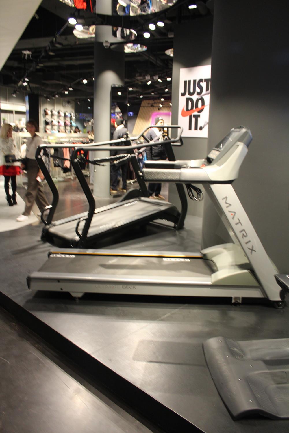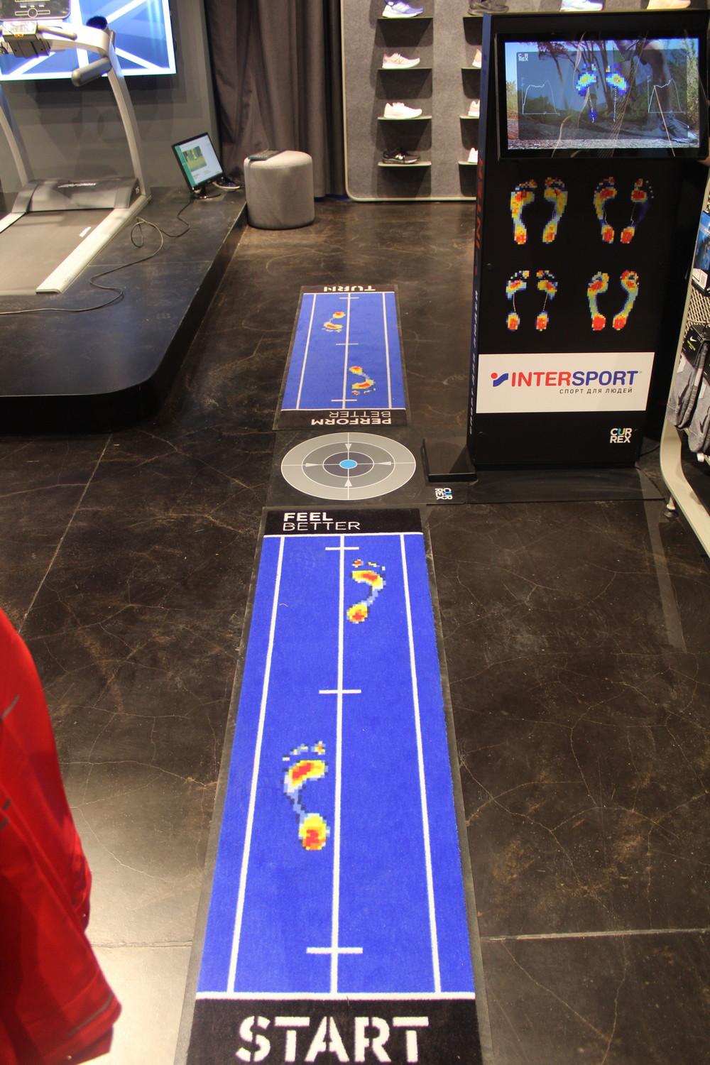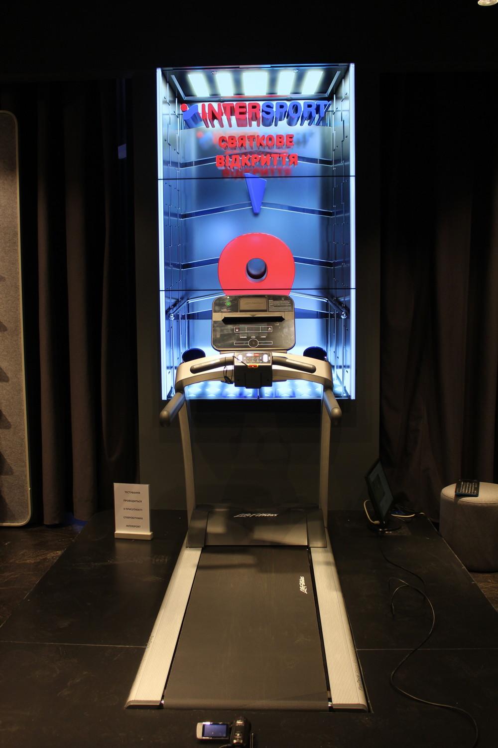 Ще одна «фішка» нового Intersport – спеціальна бігова доріжка, яка за допомогою інтерактивного екрану створює ілюзію бігу по тій чи іншій поверхні в будь-якій місцевості. Поруч завжди знаходиться консультант, готовий підказати покупцеві, апри необхідності – допомогти у виборі оптимального варіанту.