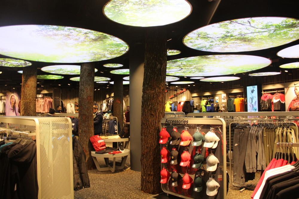 Новий об’єкт мережі товарів для спорту та активного відпочинку розташований на 4-му поверсі київського Центрального універмагу – в зоні товарів sportswear&outdoor і помітно виділяється серед своїх сусідів. Якщо підніматися по ескалаторах атріуму, то важко не помітити оригінальну вітрину з логотипом бренду, оформлену в стилі фонтану з водою, що біжить.