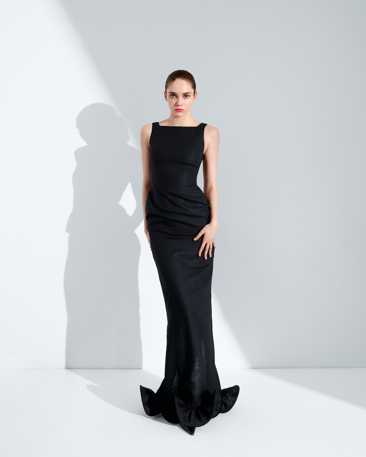 До колекції увійшли корсетні мінісукні з чіткими, майже архітектурними лініями, спідниці максі зі сміливими розрізами, сети корсетних топів із прямими штанами та максісукні з асиметричними подолами, які вже стали впізнаваним силуетом J’amemme. Усі елементи хвильової форми створюються вручну майстрами бренду. Саме вони формують візуальні коди «капсули»: плавні скульптурні лінії, які виглядають рухомими, хоча насправді статичні. Колекція виконана в трьох кольорах — класичному чорному, білому та бежевому, що підкреслюють графічність форм і не відволікають від силуету та фактури.