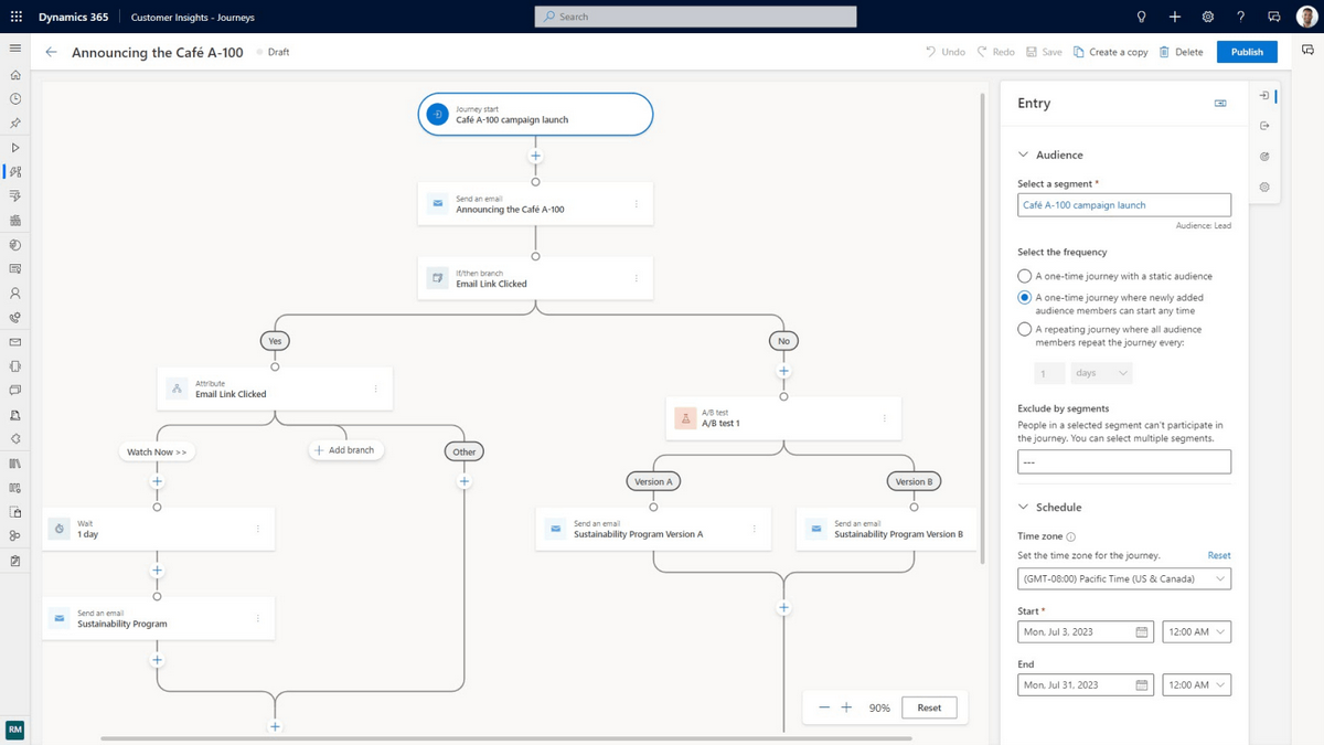 Візуальний конструктор клієнтських шляхів у режимі реального часу в Dynamics 365 Customer Insights Journeys