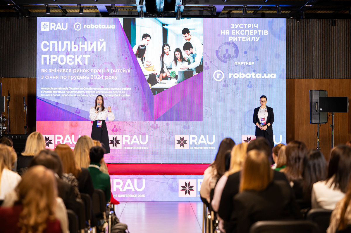 Результати аналітичного дослідження «Виклики та динаміка ринку праці в ритейлі» представили керівниця відділу аналітики Retail Association of Ukraine Яна Єрмакова та маркетинг-директорка robota.ua Юлія Далібук.