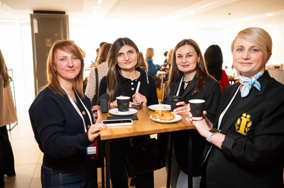 У панельній дискусії на тему «Інвестиції в розвиток бізнесу vs інвестиції в розвиток людей» взяли участь Аліна Кіптик, CEO Tasty Food Ltd, франчайзі KFC, Юлія Кузьменко, HRD АНЦ, Євгенія Кузьминська, HRD ОККО, Наталя Байдик, HRD Подорожник та модератор Анна Толмачова, HRD Metro.