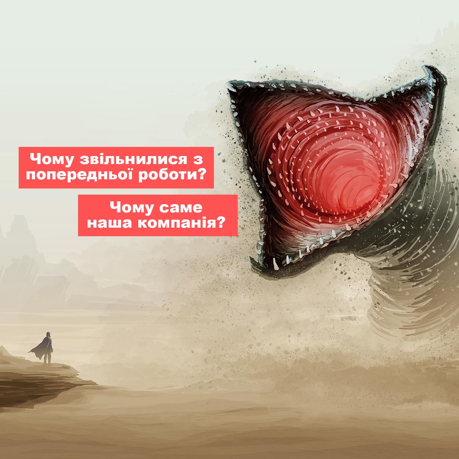 Вихід фільму “Дюна” 2021 року справив неабияке враження на компанії. Пирятин всюди почав вбачати бажання скуштувати їх сирів, а у robota.ua побачили у зустрічі із Шай-Хулудом з “Дюни” алегорію на типову співбесіду з роботодавцем.