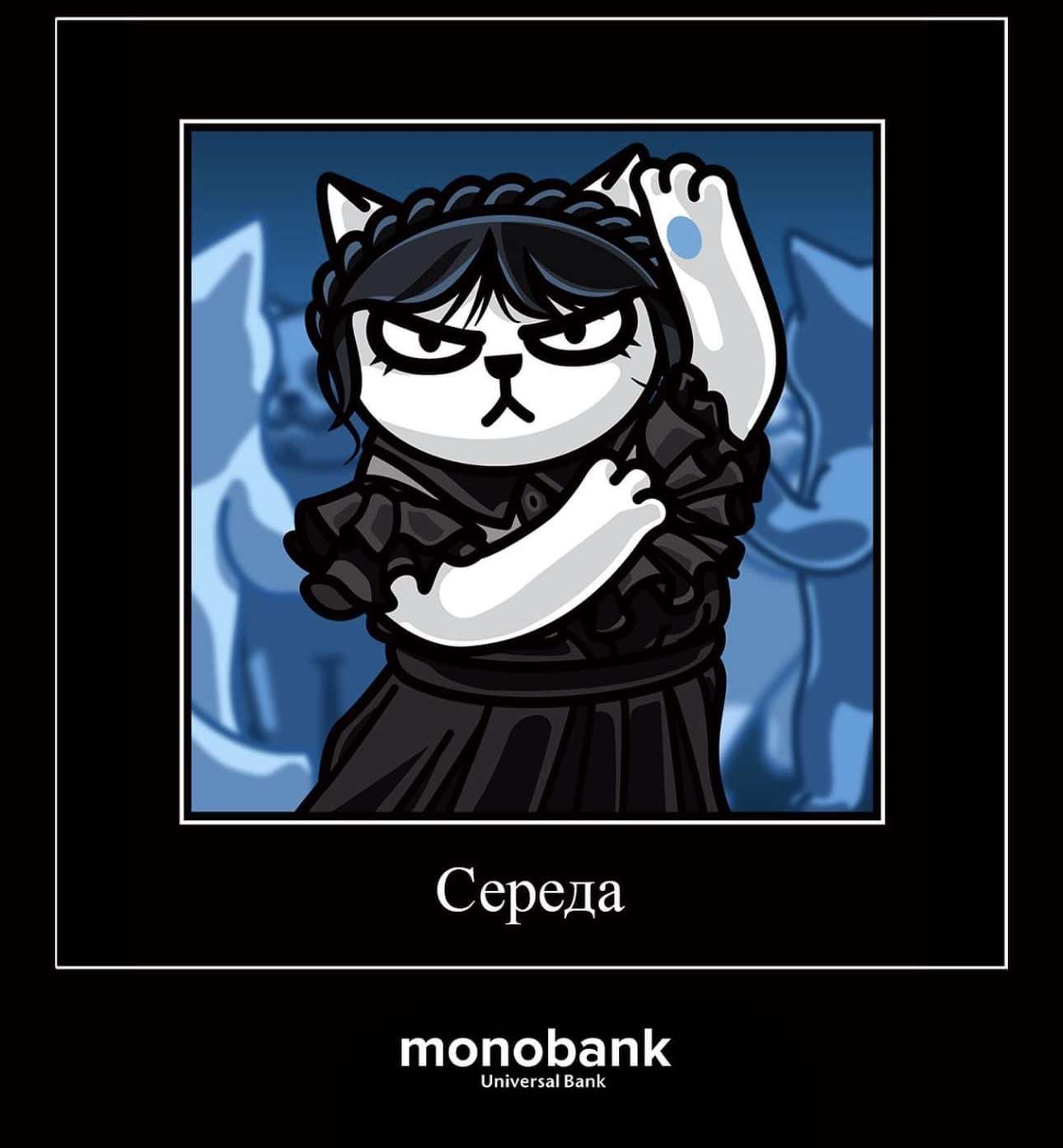 Не обходиться й без серіальних хітів. Наприклад, “Wednesday” Тіма Бартона майже потрапив на марку Укрпошта і до колекції котиків Monobank.
