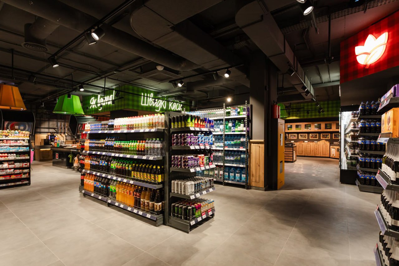 Торгова площа магазину складає 600 кв. м. Для зручності клієнтів окрім класичних кас, працюють ще й каси самообслуговування.