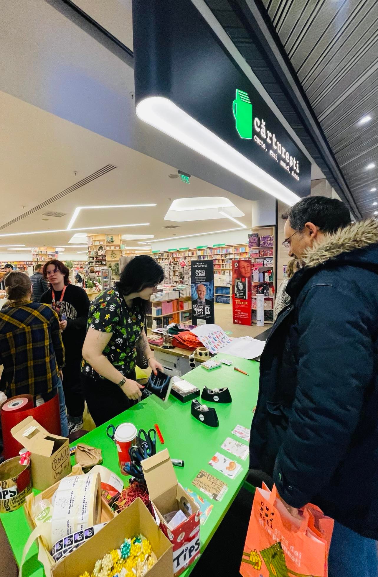 Приємною фішкою став додатковий святковий сервіс для покупців лібраріума Carturesti – безкоштовне пакування подарунків, яке розмістилося замість вітрини магазину.