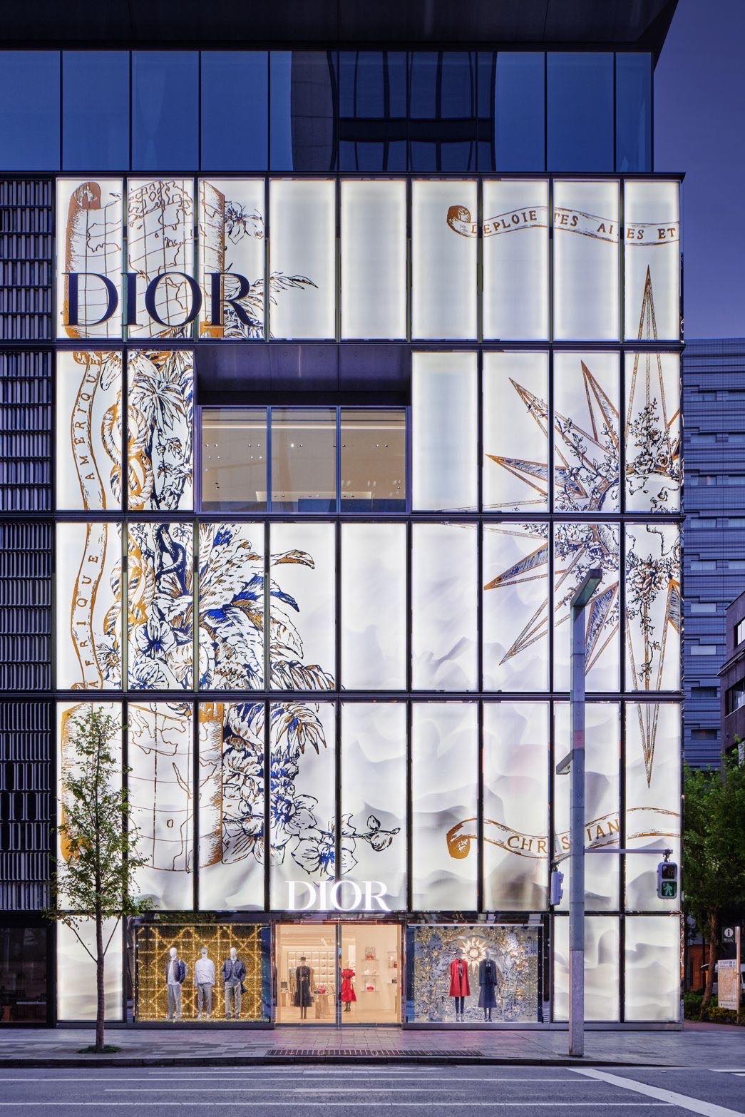 Зовнишній декор бутіків співзвучний чарівному духу круїзної колекції Dior 2023 від Марії Грації Кьюрі, яка надихнулася творчостю української художниці Олесі Трофименко, а саме Древом життя, яке стало центральним образом.