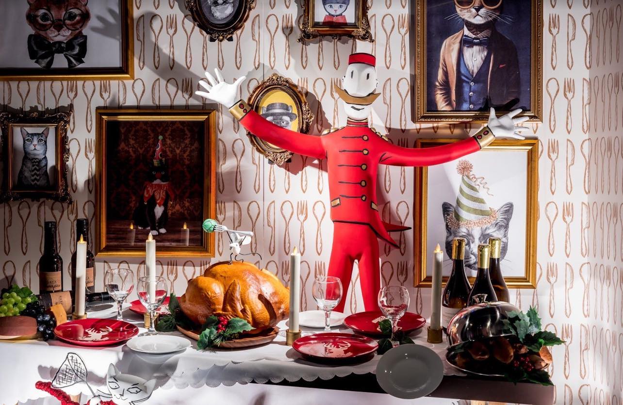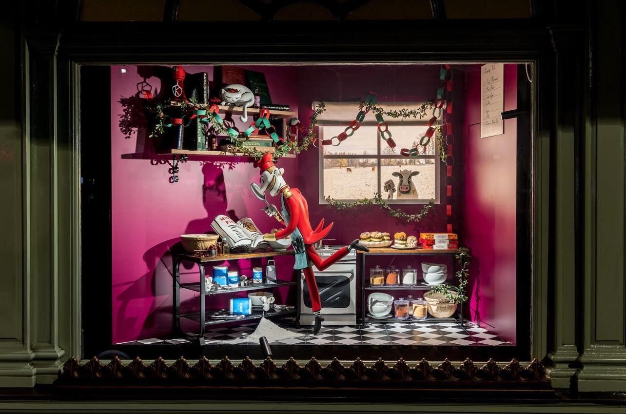 Справжні казкові вітрини про пригоди Джефрі та його кота створили Fortnum & Mason’s Piccadilly в Лондоні. Кожна вітрина – це окрема історія про те, як Джефрі намагається дотримуватись різдвяних традицій (випікання пирогів з фаршем, пакування подарунків, прикрашання ялинку і т. п.) та постійно робить щось не так, тому його кіт постійно намагається врятувати ситуацію.