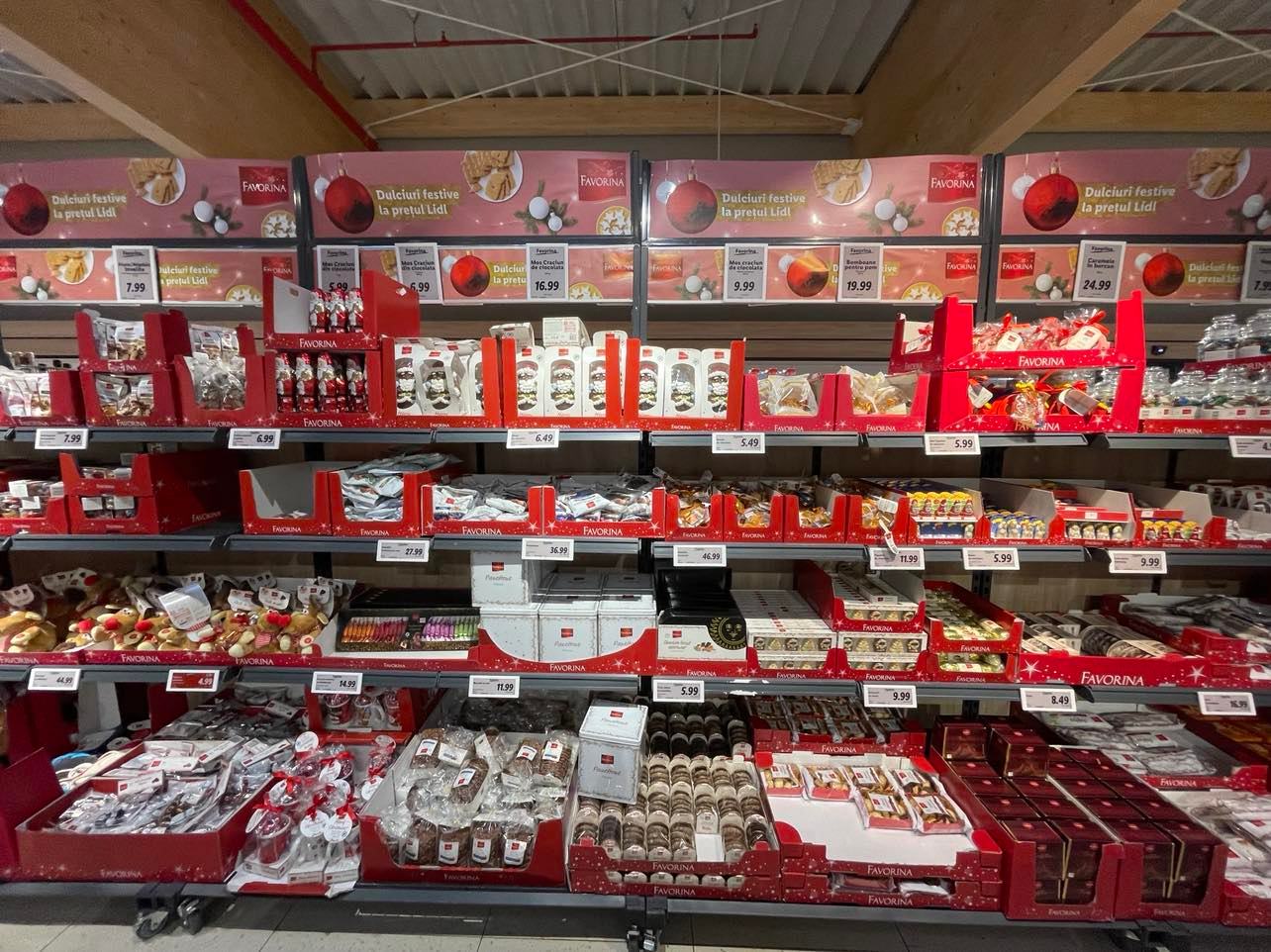 А це приклад новорічного промо постачальника, особливістю якого є викладка окремо від категорії на спеціально відведеній лінії промо-стелажів (біля 12 стелажів) та промо-торцях. Весь асортимент тут викладено в червоних відкритих коробках – ну дуже привертає увагу, хочеш не хочеш – підходиш, зависаєш, щоб усе роздивитися, й звісно, що щось береш собі у візок.