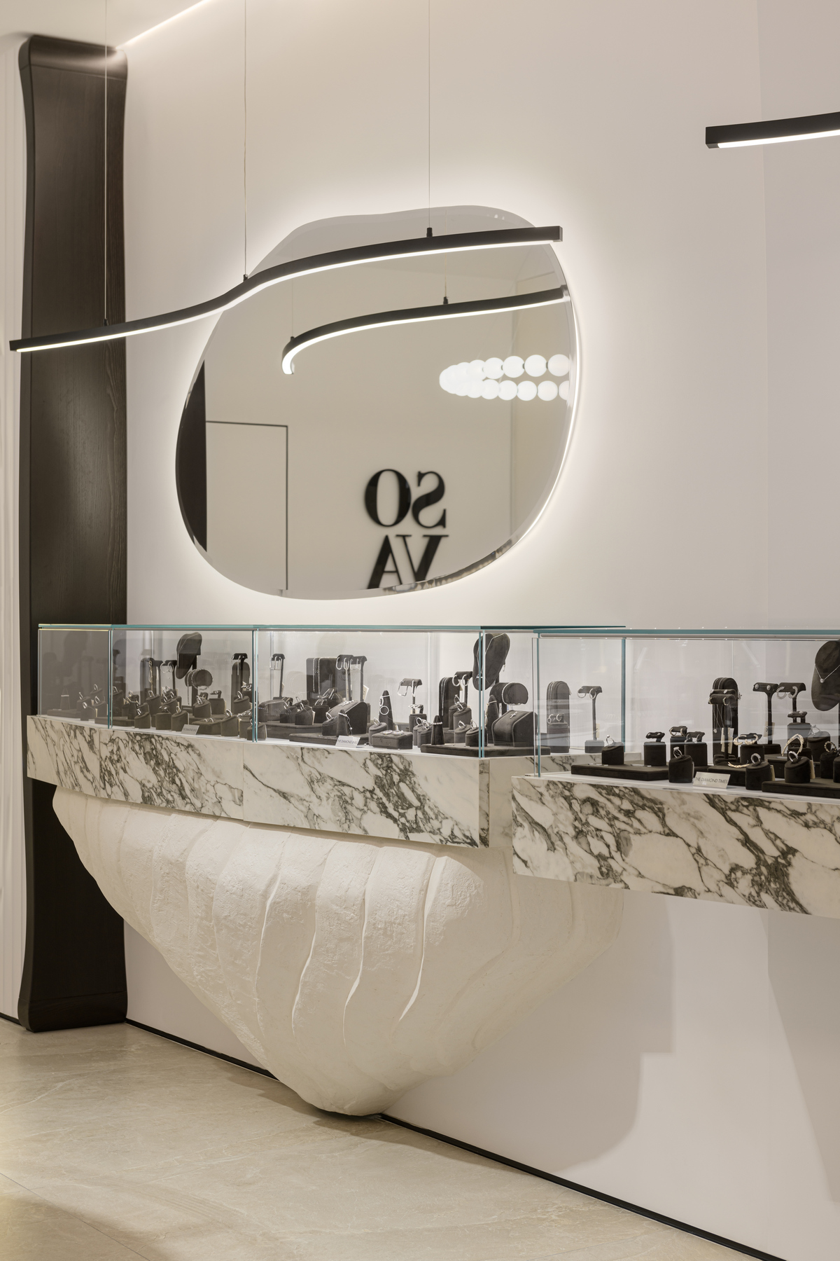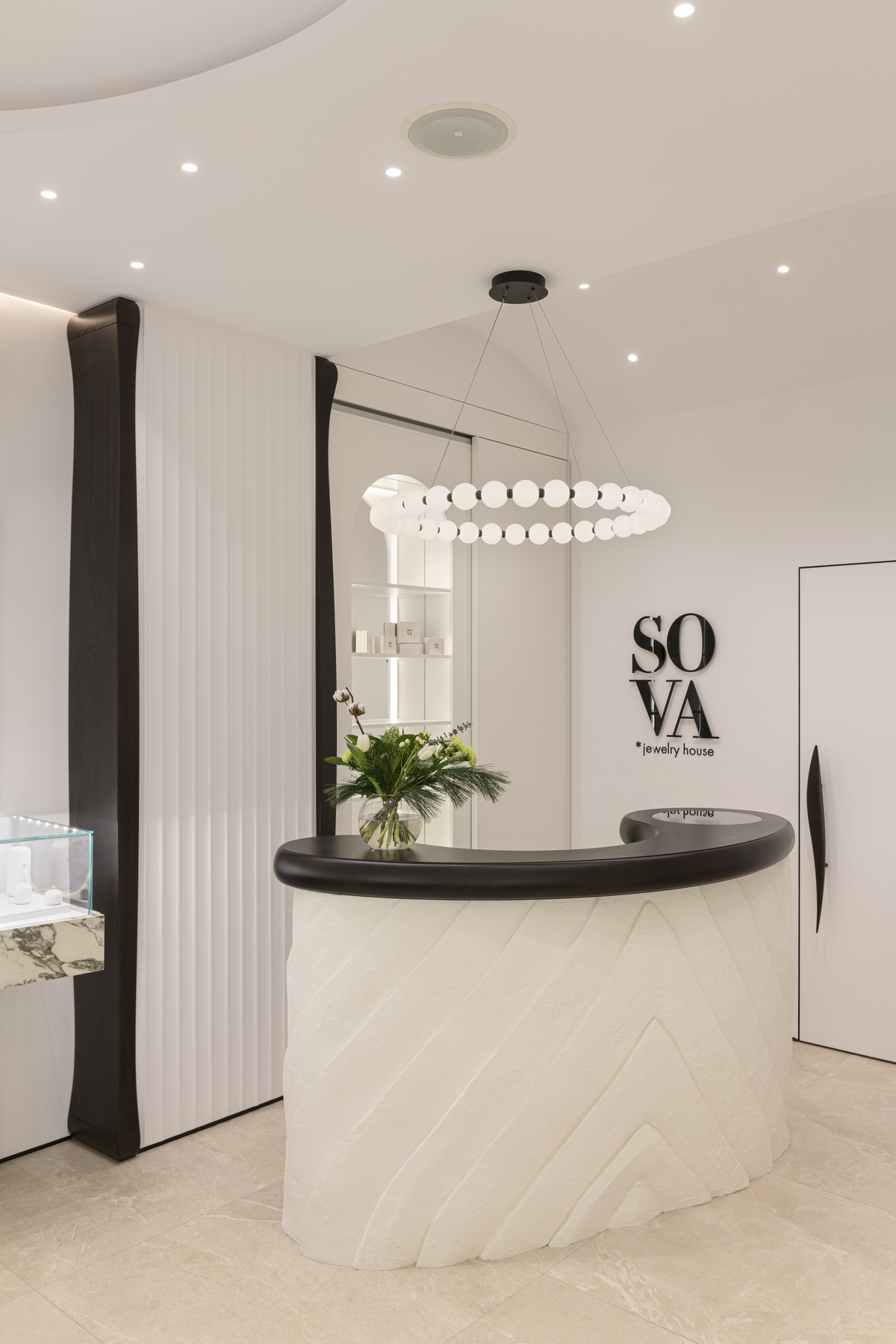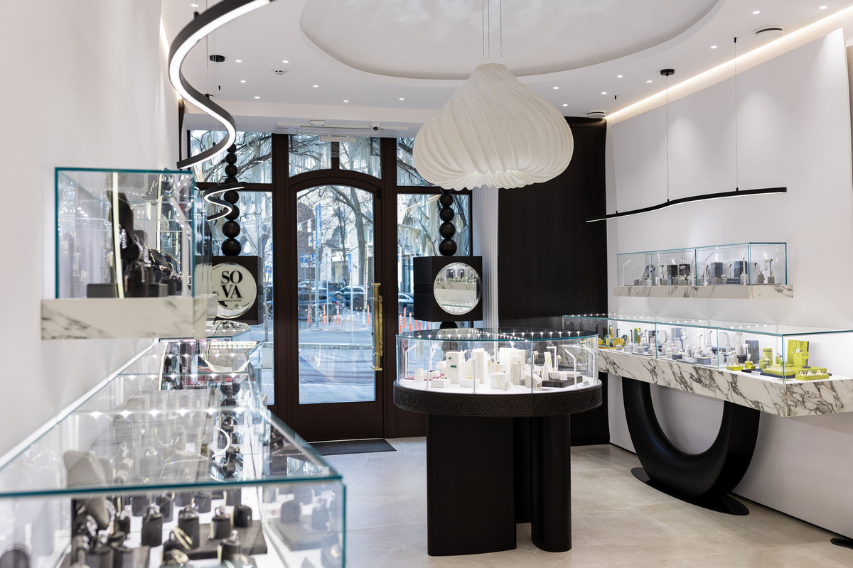 “Цей проєкт — про пошук балансу між візуальною легкістю, глибоким змістом і практичністю. Флагман SOVA — це місце, де ювелірна майстерність бренду підсилюється мистецтвом інтер’єру”, — розповідає Олександр Махно, провідний дизайнер студії Makhno.