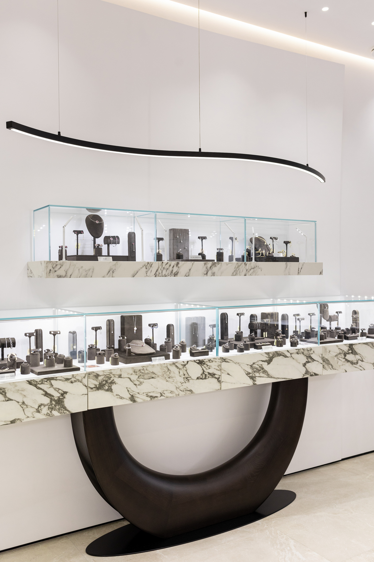 Інтер’єр оновленого магазину створює ідеальні умови для ювелірного шопінгу. Холодне світло в бутику розташоване так, аби клієнти могли оцінити сяйво кожної грані каміння.