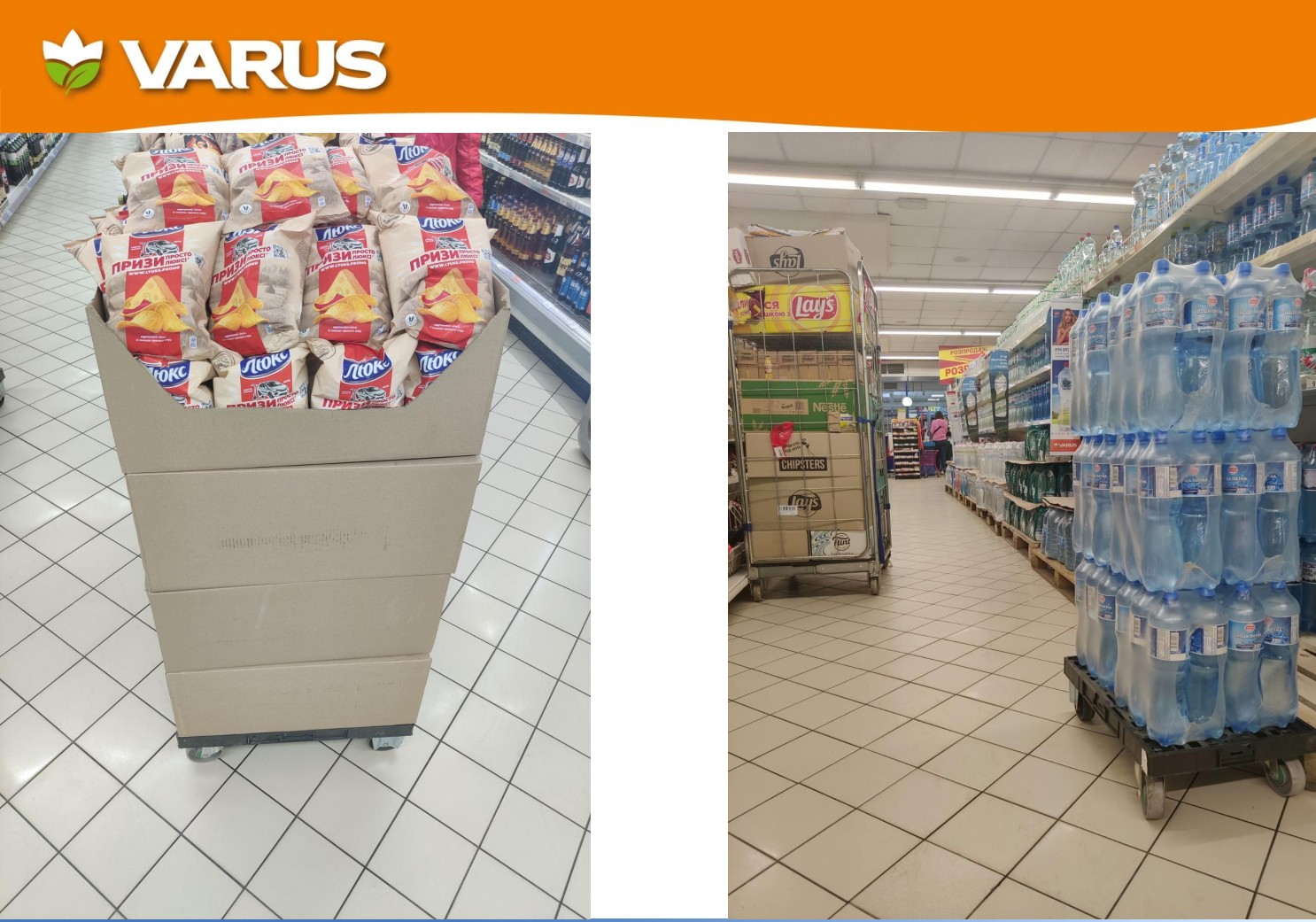 Тому взялися тестувати нові рішення від K.Hartwall. Поки цей проект на самому початку, але в компанії бачать в цьому велику перспективу. У мережі Varus тестують євровізки ємністю в чверть палети. Комплектація товару поки відбувається, як і з roll cage, але без автоматизації процесів.