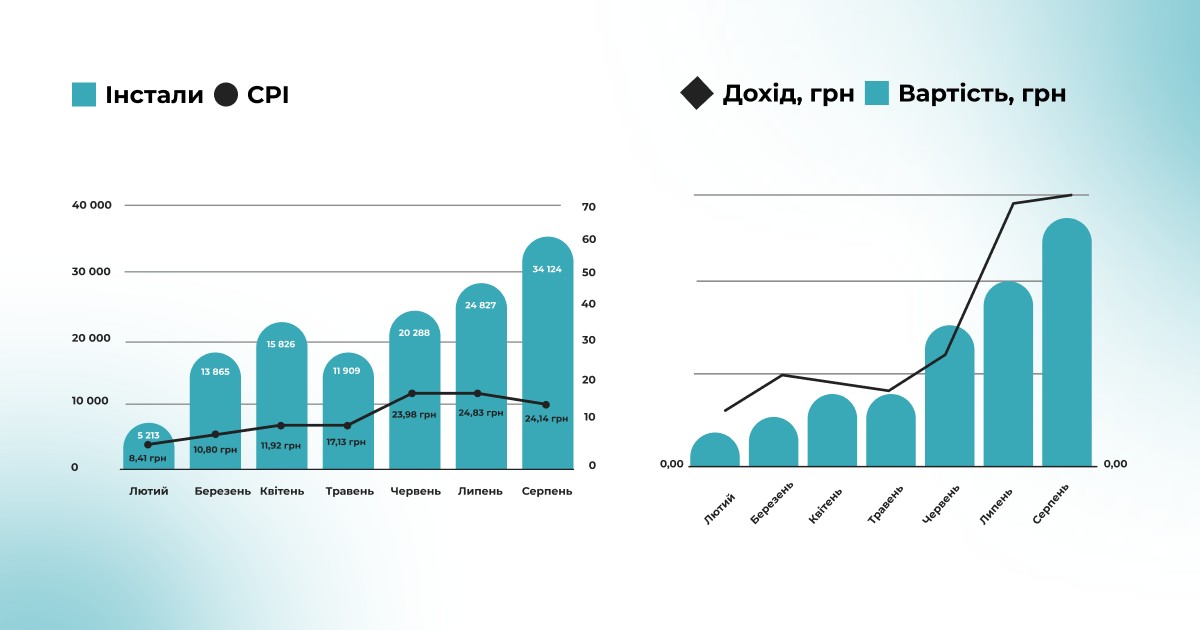 - У лютому запустили Android-кампанію і отримали понад 5 тисяч завантажень за середньою ціною 8 грн.