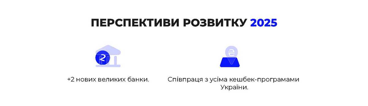 - Інтеграція кешбек-програм через співпрацю з банками-партнерами;
